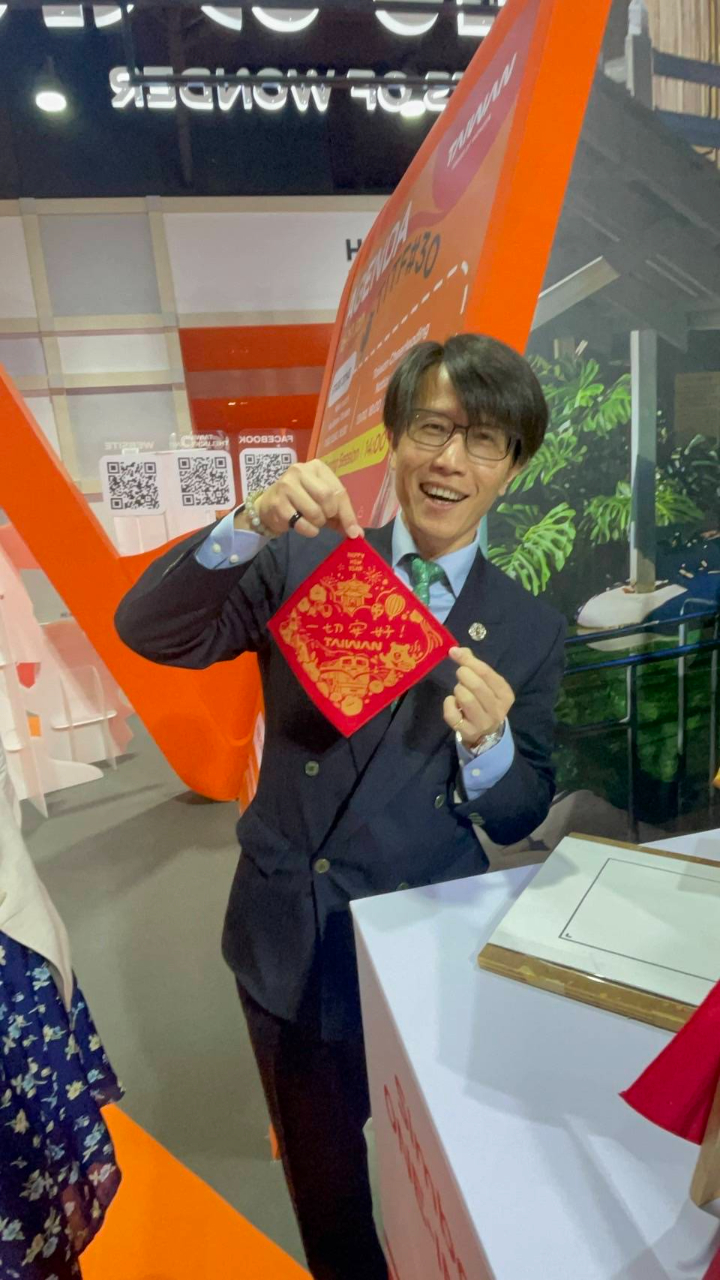 董公使在參訪臺灣包括國籍航空公司、各大旅宿業者及縣市政府的參展攤位時表示,疫情後泰國訪臺旅客數量顯著回升,去年訪臺人數已接近疫情前的歷史高峰,達近四十萬人次。臺灣以秀麗的自然風光、豐富多樣的美食以及安全友善的旅遊環境,深受泰國民眾喜愛,成為他們的首選旅遊目的地之一。董公使並期盼透過宗教、文化及觀光等軟實力的展現,吸引更多泰國朋友走進臺灣,親身體驗寶島的獨特魅力與人文風情。