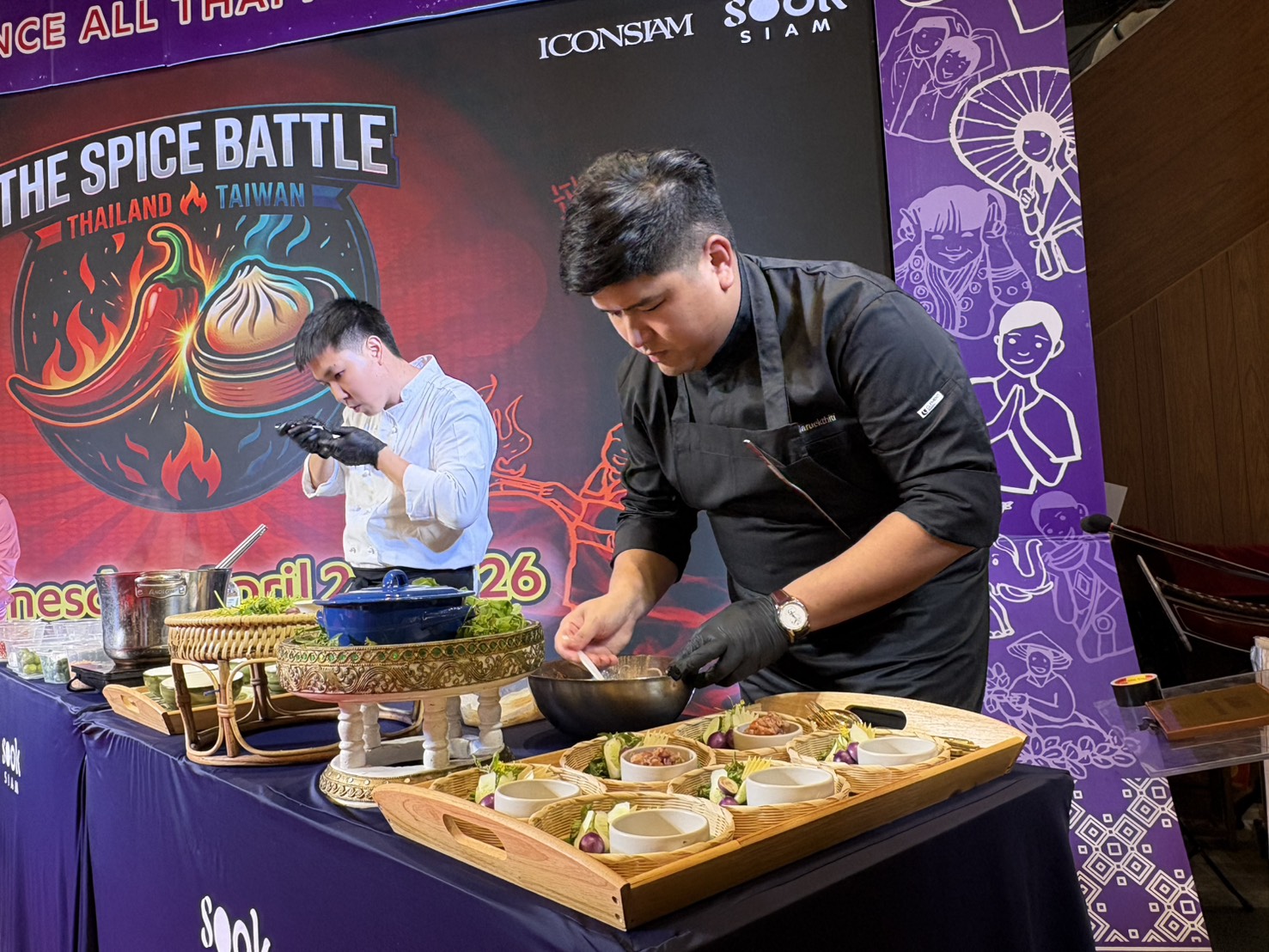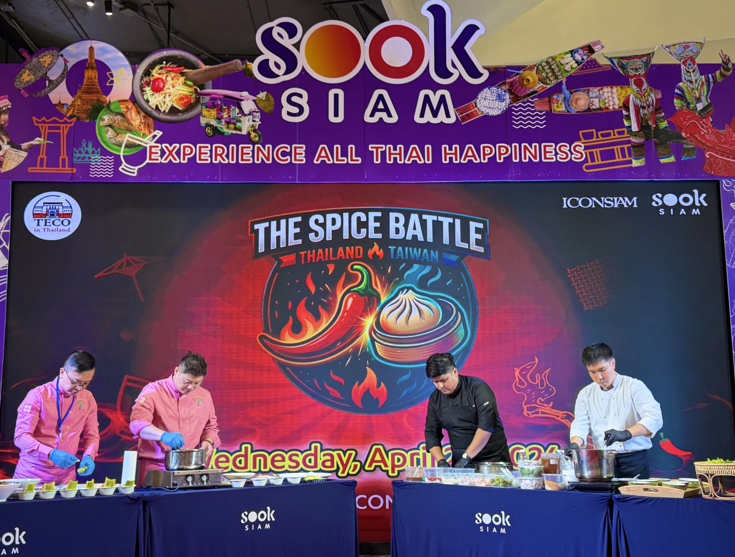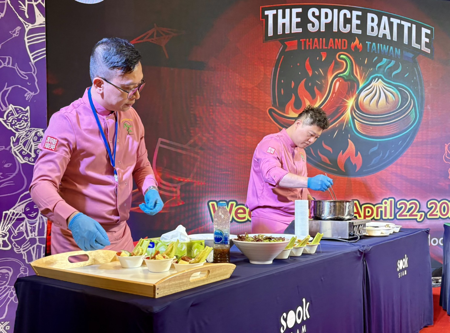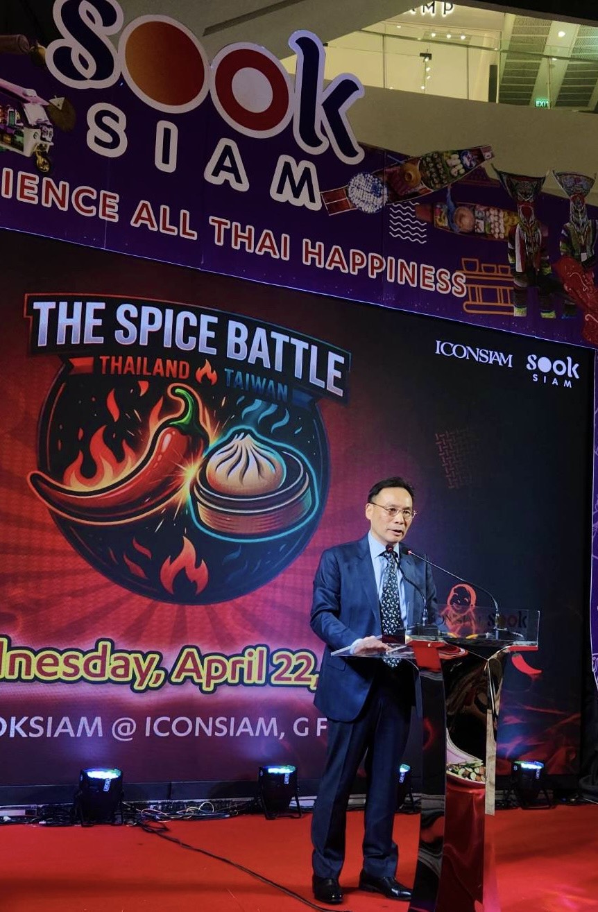 為深化台泰文化交流,駐泰國代表處攜手曼谷ICONSIAM購物中心、中華美食交流協會,於2026年4 月22日在SOOKSIAM 隆重舉行「The Spice Battle-Taiwan vs Thailand」美食交流活動。現場邀集台、 泰兩國頂尖廚師同台對決,切磋技藝,展現精湛廚藝與獨特的飲食文化。