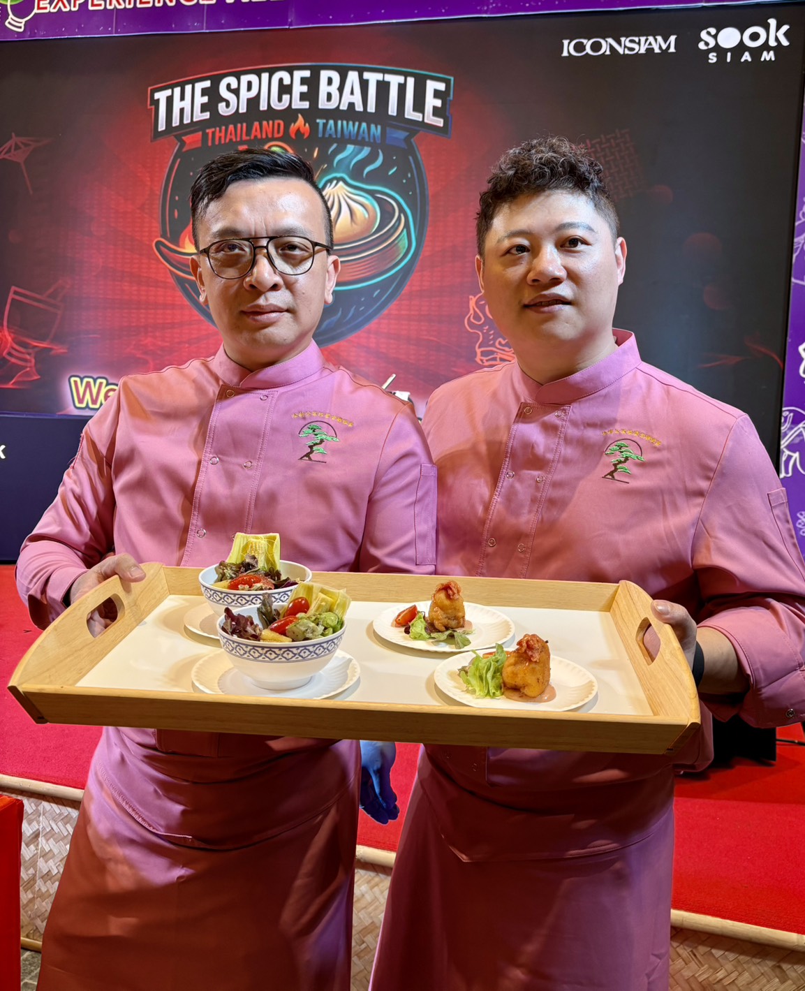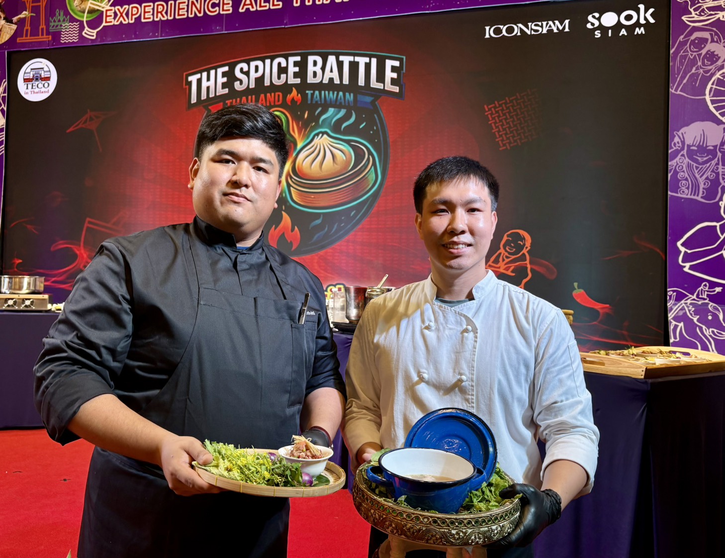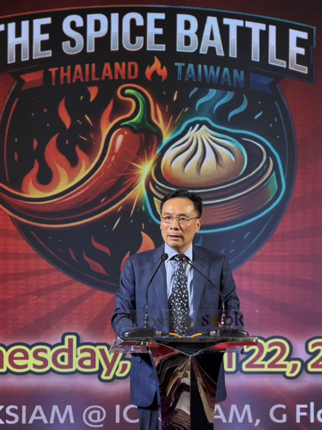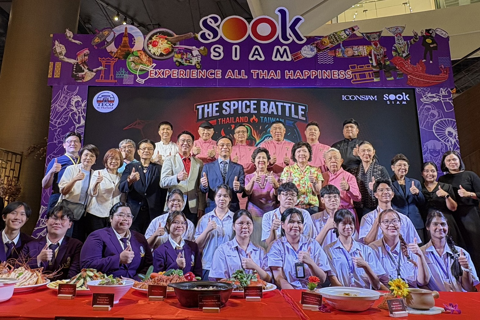 為深化台泰文化交流,駐泰國代表處攜手曼谷ICONSIAM購物中心、中華美食交流協會,於2026年4 月22日在SOOKSIAM 隆重舉行「The Spice Battle-Taiwan vs Thailand」美食交流活動。現場邀集台、 泰兩國頂尖廚師同台對決,切磋技藝,展現精湛廚藝與獨特的飲食文化。