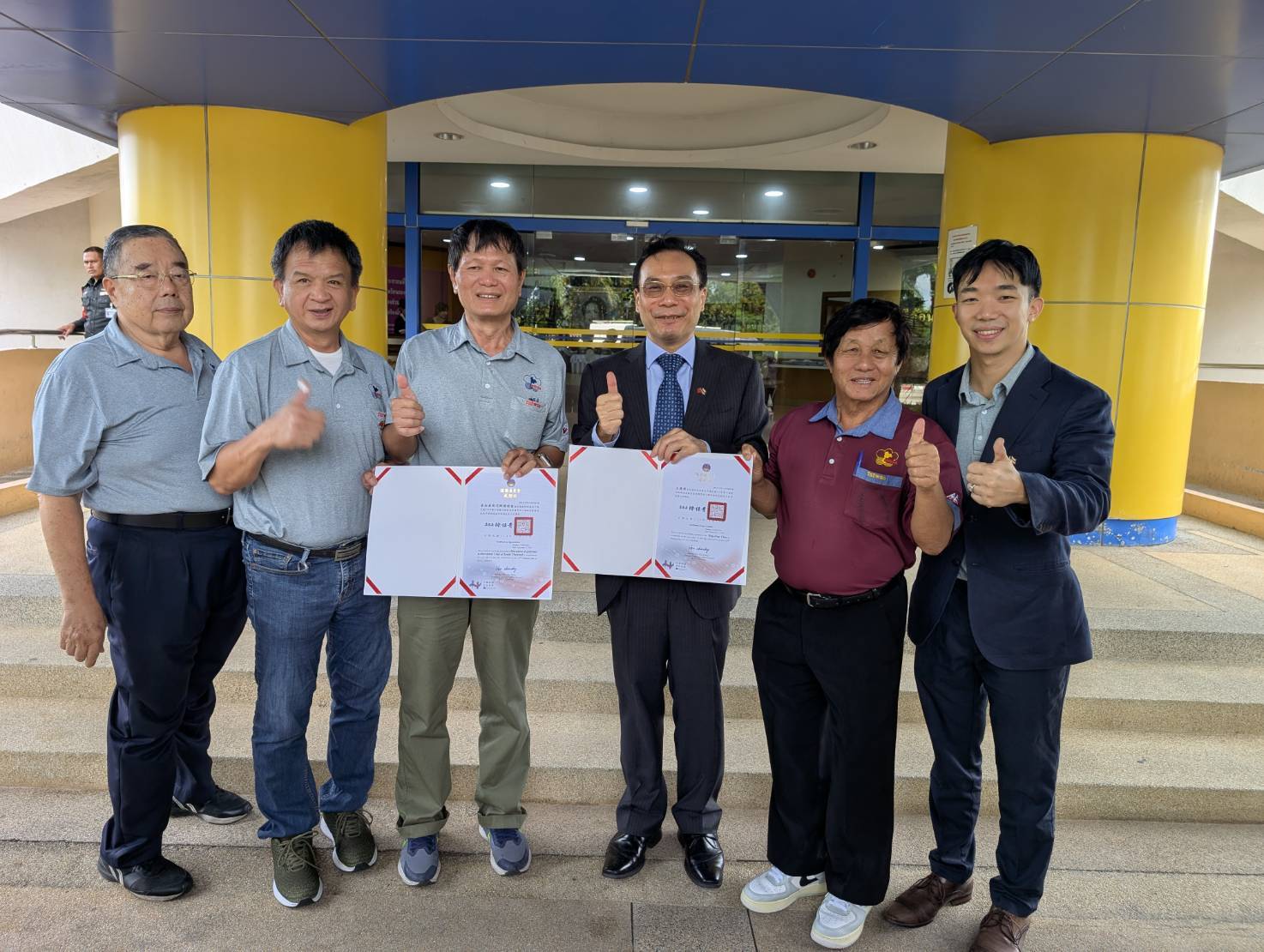 นอกจากนี้ สมาคมชาวจีนโพ้นทะเลสี่แห่ง ประกอบด้วยสมาคมจงหัวแห่งประเทศไทย สมาคมไต้หวันแห่งประเทศไทย สมาคมการค้าไทย-ไต้หวัน สมาคมชาวจีนโพ้นทะเลแห่งประเทศไทย ได้ริเริ่มกิจกรรมระดมทุนเพื่อช่วยเหลือผู้ประสบภัยน้ำท่วมในภาคใต้ของประเทศไทย โดยระดมทุนได้รวมทั้งสิ้น 5,643,088 บาท เงินบริจาคนี้ได้มอบให้แก่จังหวัดสงขลาและชมรมผู้ประกอบการค้าไต้หวันภาคใต้ในวันเดียวกัน โดยมีนายปีเตอร์ หลัน ผู้แทนรัฐบาล สำนักงานฯ เป็นสักขีพยาน และตัวแทนจากองค์การบริหารส่วนจังหวัดสงขลา และนายชิวอิ้งหัว ประธานชมรมฯ เป็นผู้แทนรับมอบ ทั้งนี้ หวังว่าเงินบริจาคดังกล่าวจะช่วยให้ประชาชนในพื้นที่ให้ฟื้นตัวจากอุทกภัยโดยเร็วที่สุด การบริจาคนี้แสดงให้เห็นว่าชุมชนชาวไต้หวันและชาวจีนโพ้นทะเลมีความผูกพันอันลึกซึ้งกับแผ่นดินไทย มีความยอมรับในอัตลักษณ์ชุมชนท้องถิ่น และทำให้มิตรภาพอันแน่นแฟ้นระหว่างไต้หวันและไทยเป็นที่ประจักษ์