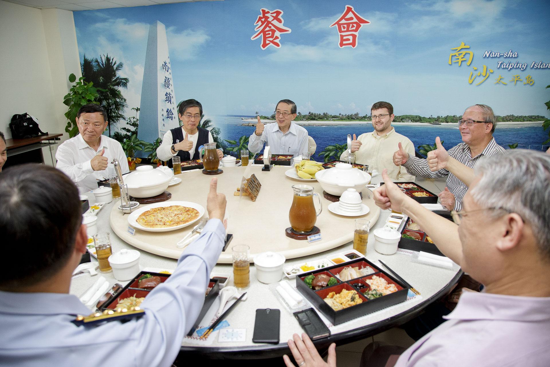 我政府邀請參團嘉賓親嚐太平島淡水及以當地食材烹煮之料理,以及參觀該島各項和平建設及文史遺址,並說明中華民國政府以和平方式捍衛其法定權益,以及我政府歷來和平經略南海之政策作為,盼國際社會肯定我政府於去年5月26日提出之「南海和平倡議」,並應注及中華民國在南海之存在及權益,以適當方式將我國納入南海多邊協商機制,以利維持南海的和平及穩定。