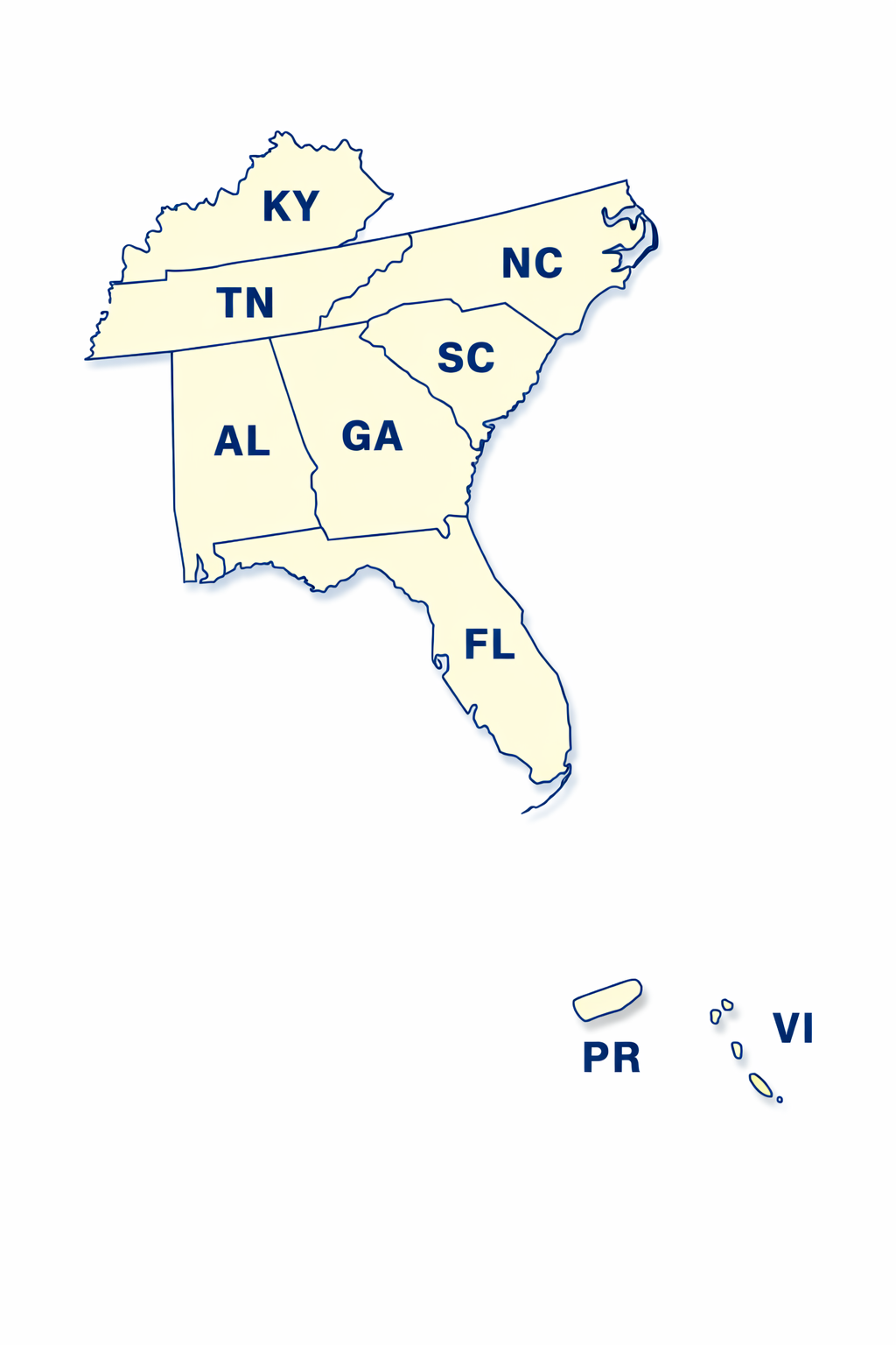 Southeastern US with Puerto Rico highlights