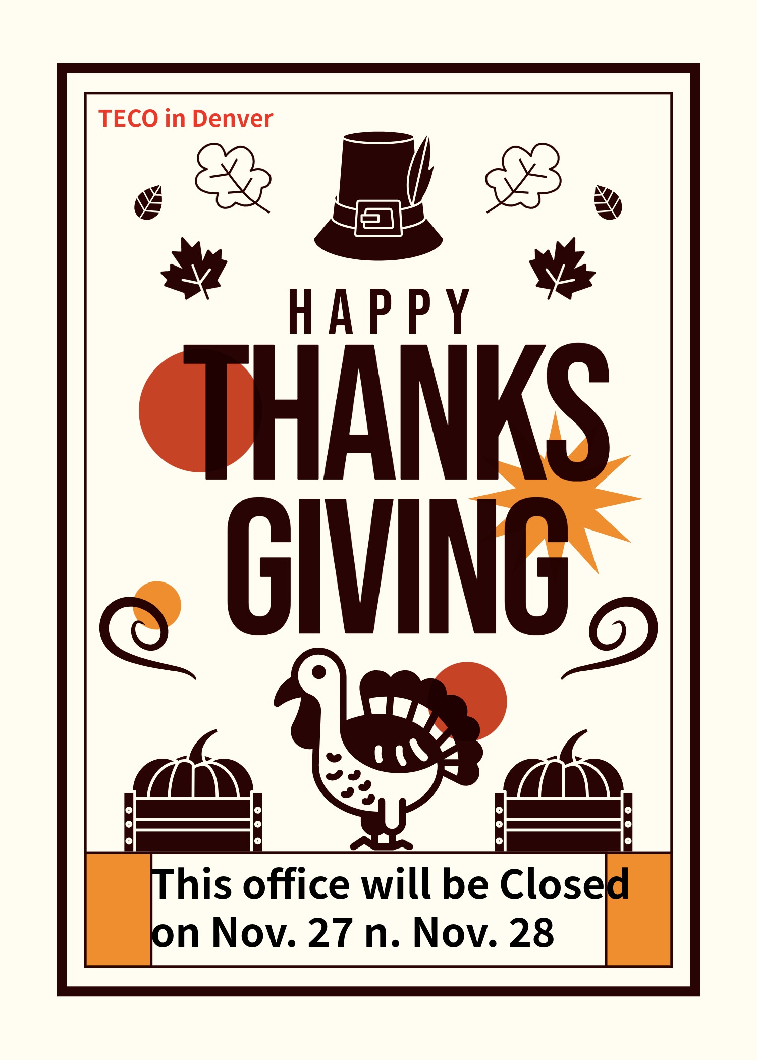 今年11月27日(星期四)及11月28日(星期五)為美國感恩節及美國原住民傳統日,駐丹佛台北經濟文化辦事處配合美國聯邦政府均將各放假1天。如遇緊急狀況需要本處協助,請致電(816) 522-9546.