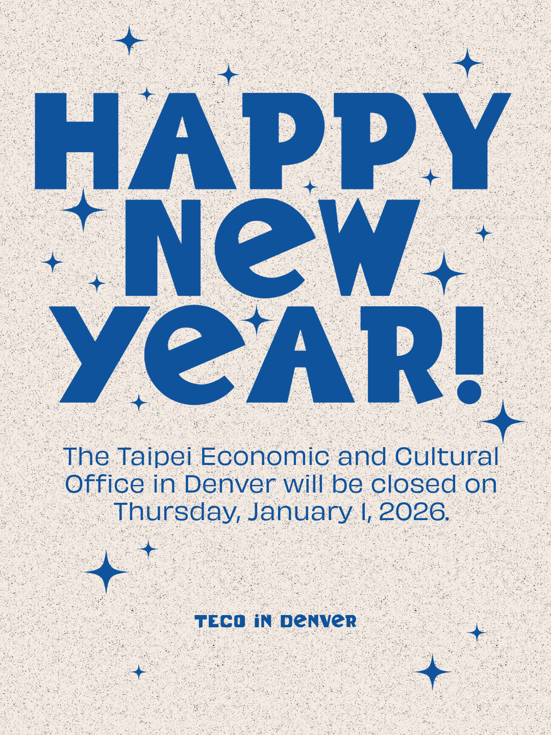 【Announcement】 In observance of the Founding Day of the Republic of China (Taiwan), the Taipei Economic and Cultural Office in Denver will be closed on Thursday, January 1st, 2026. If you need emergency assistance, please call (816) 522-9546.