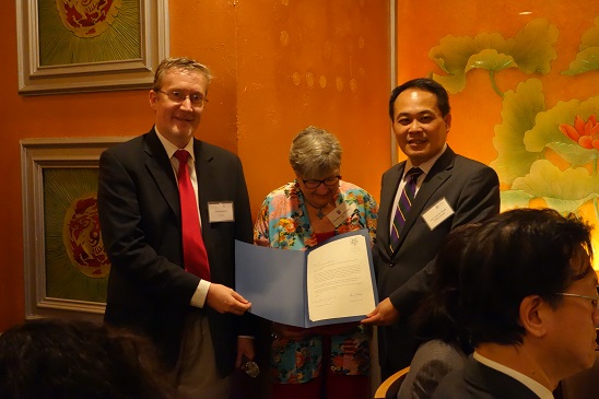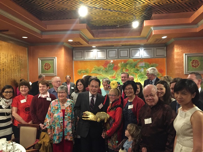 「休士頓牛津大學校友協會(Houston Oxford Society)」由美國主流社會畢業於英國牛津大學之校友組成,繼上(104)年首次與駐休士頓辦事處合作舉辦農曆新年餐會後,本(105)年再度由駐處教育組協助籌劃,於2月13日中午在台僑經營之Qin Dynasty Restaurant舉辦農曆猴年慶祝餐會。駐休士頓辦事處黃敏境處長夫婦偕齊永強副處長夫婦、教育組周慧宜組長及相關同仁出席,出席之牛津校友、賓客及媒體記者合計50餘人。 該協會主席Terry Slesinski-Wykowski於餐前致詞時,首先帶領全體賓客為本年2月6日台南地震造成數百位人民傷亡默哀致意,並感謝與本處合作辦理一年一度之農曆新年餐會,有助該協會強化與本處之文化與教育聯繫。Wykowski主席續宣布該會秘書長Kevin Bradford陞任共同主席,並將2人聯名簽署之書面聲明致贈本處黃總領事,感謝本處與該會分享農曆新年之台灣傳統文化與價值,同時表達對台南地震傷亡災民及其家屬的誠摯慰問之意。 黃處長應邀致詞感謝「休士頓牛津校友協會」關懷台南震災中傷亡之我國人民;台灣與休士頓均為多元文化背景移民所組成之社會,本年1月我國舉行總統大選,蔡英文博士獲得台灣各族群人民支持當選中華民國首位女總統,也是華人社會唯一完全民主國家的最高女性領導人;在新總統的領導下,台美關係及兩岸關係將穩健發展。黃總領事並介紹蔡總統當選人英文係畢業於美國康乃爾大學,嗣於英國倫敦政經學院取得博士學位,對英、美兩國甚為熟悉等語。 為彰顯農曆新年之台灣文化特色,駐處邀請來自台灣之僑界書法家江震遠先生於現場揮毫,並請僑教中心台灣文化導覽員陳逸玲僑務促進委員以投影片介紹中西文化差異,與會之賓客咸對具台灣文化特色之農曆新年表示讚賞,互動氣氛熱烈,餐會進行約2小時結束。