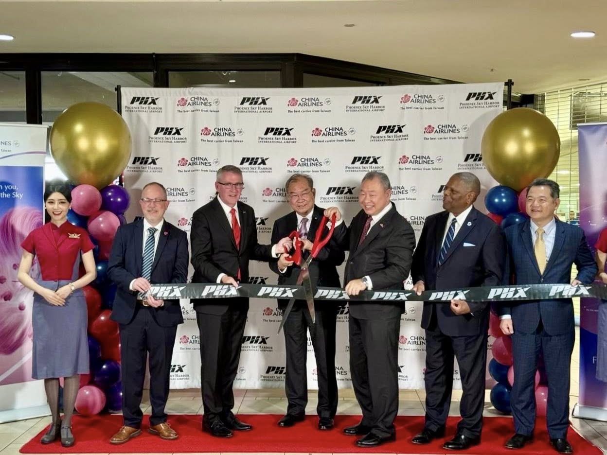 中華航空於12月3日在鳳凰城盛大舉辦台北-鳳凰城直飛航線首航典禮及晚宴。駐美代表俞大㵢大使與駐洛杉磯辦事處紀欽耀處長連同鳳凰城市長蓋蕾歌(Kate Gallego)、亞利桑納州商務廳長Sandra Watson、華航高星潢董事長及各界代表共同見證這一重要里程碑。