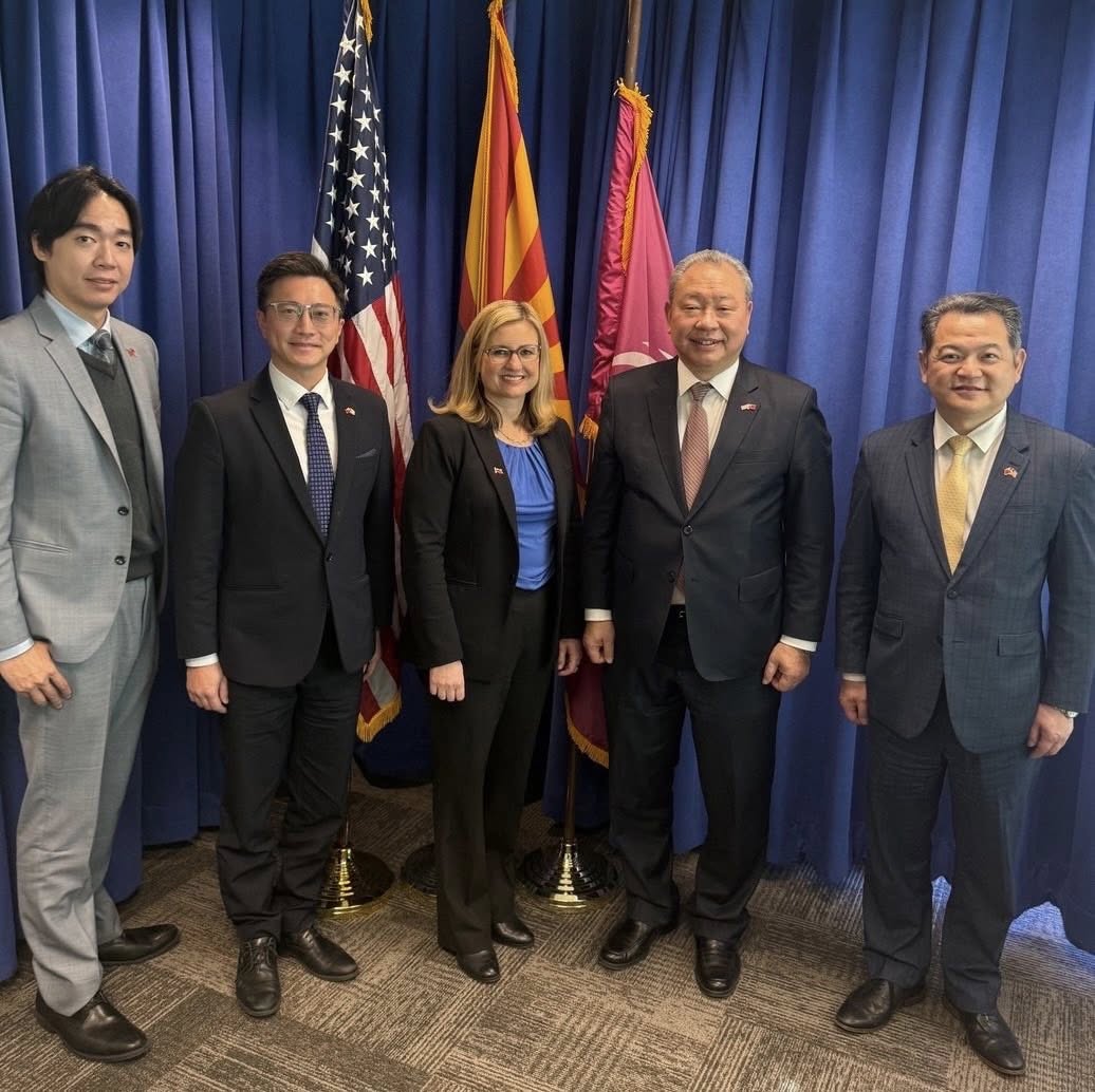 Ambassador Alexander Yui, Taiwan’s Representative to the United States, called on Phoenix Mayor Kate Gallego on December 4 to discuss economic ties, semiconductors, biotech, and future cooperation. Both sides welcomed the successful launch of China Airlines’ Taipei–Phoenix route, which strengthens travel, business, and supply-chain links. TECO-LA Director General Amino Chi joined in the conversation.