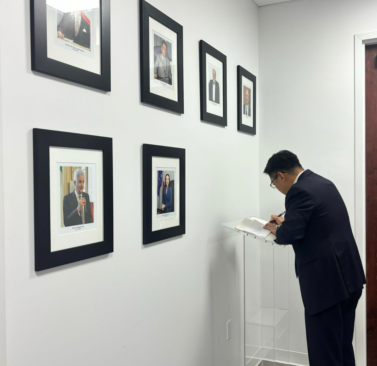 自4月23日起,義大利駐邁阿密總領館設置悼念冊(Book of Condolences),並開放駐邁阿密各國領事團成員前來致意及悼念。 周處長與本處同仁,及多位駐邁阿密總領事和外交人員一同前往義大利駐邁阿密總領館,對教宗辭世表達無盡的哀思。