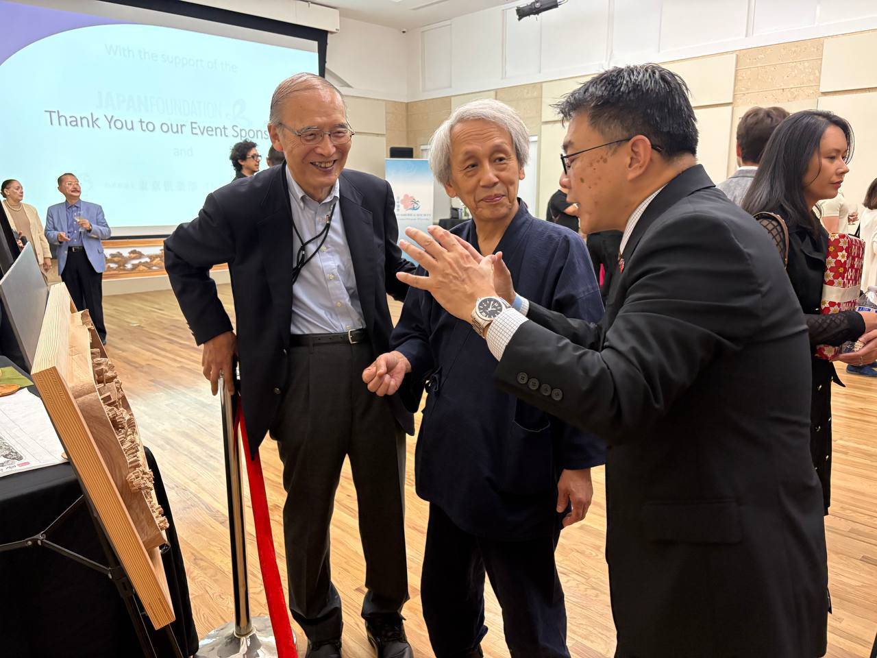 周啟宇處長偕游嘉翔組長於 12 月 4 日應邀出席「日美協會」(Japan-America Society)舉辦的忘年會,並與出席賓客欣賞現場展出的日本「井波」(Inami)木雕及雕刻家「南部白雲」(Nambu Hakuun)的現場示範。