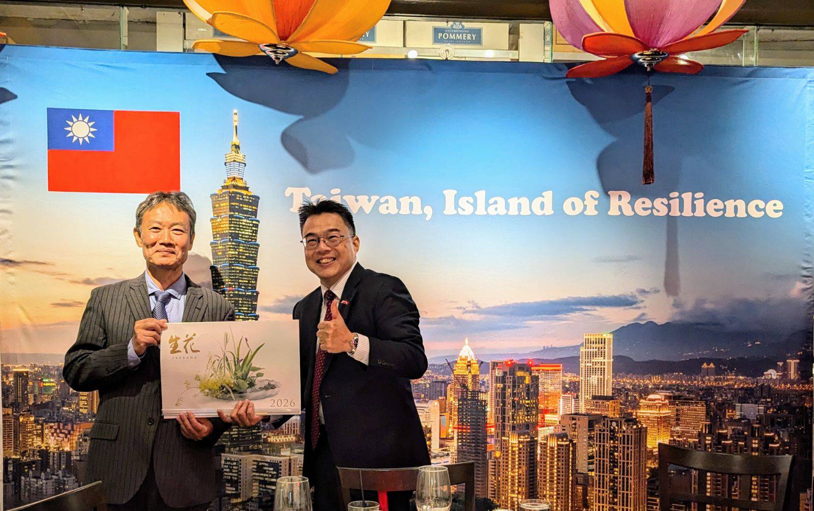 Guests enjoyed a beautifully prepared sushi and sashimi boat, celebrating the warm friendship among Taiwan, the United States, and Japan while exchanging early Thanksgiving greetings.