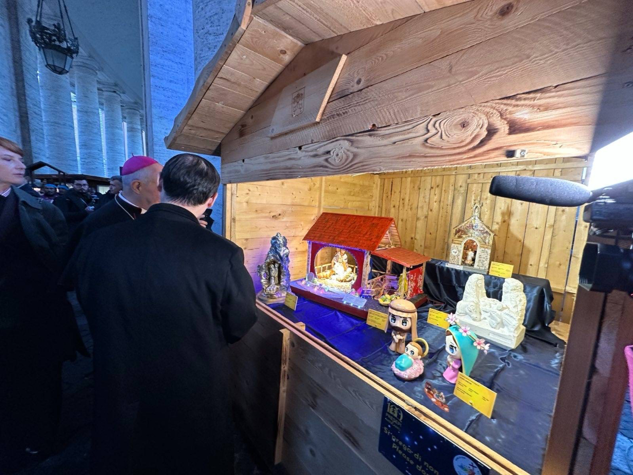 開幕剪綵後,賀大使向Fisichella總主教致意,並為他介紹台灣馬槽作品;F總主教興致盎然欣賞我國馬槽作品,並感謝台灣教區始終全力支持旨活動,年年參與之熱情可感。