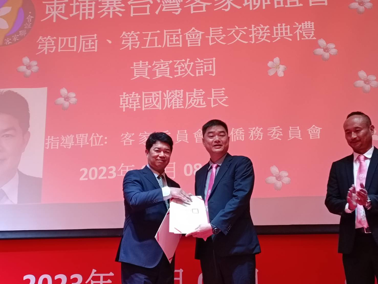 112年3月8日駐胡志明市辦事處韓國耀處長出席柬埔寨臺灣客家聯誼會第四屆、第五屆會長交接典禮。