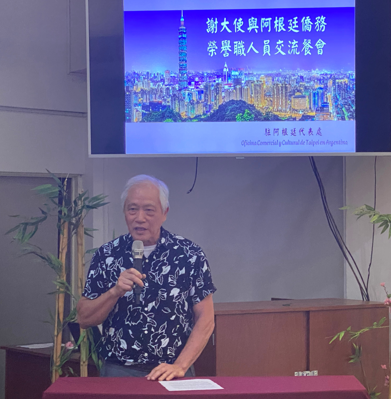 活動開始,謝大使首先代表政府向旅阿僑胞轉達誠摯問候,並感謝僑務榮譽職人員長期熱心僑界公益,支持政府僑務及外交工作,協助代表處,積極促進台灣與阿根廷間的文化及經貿等各方面交流,時時刻刻關心台灣,並在國際間為台灣發聲。