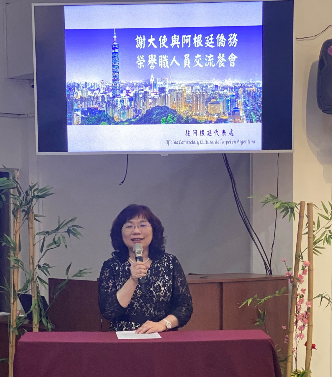 謝大使另表示,隨着新冠肺炎疫情趨緩,肯定僑團逐漸恢復各項實體的活動,凝聚僑界向心。此外,政府為表達對旅阿僑胞的關懷與重視,本年除將在4月初在阿根廷舉辦第三屆中南美洲僑民會議外,另外也將派遣國慶文化訪演團、臺灣美食廚藝巡迴講座等訪問團來阿根廷,歡迎大家屆時共襄盛舉,代表處將全力協助各承辦僑團辦好每項活動,促進台阿文化交流,並邀請僑胞有空經常到代表處走動,多多交流。