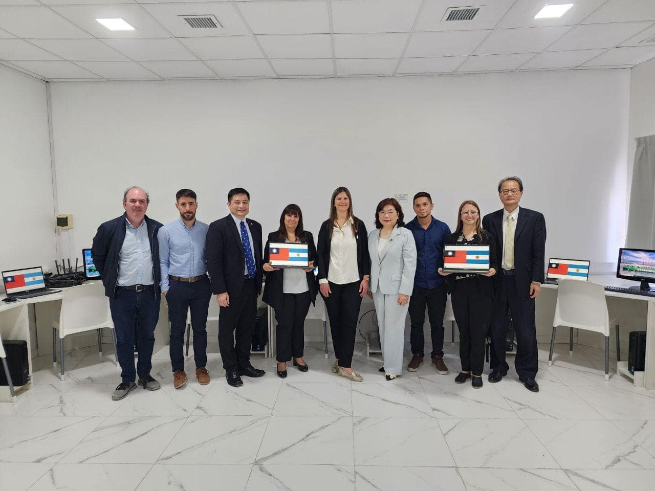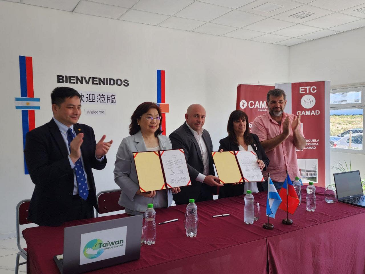 為協助阿根廷教育資源相對缺乏的學校強化其數位資訊教育,縮短城鄉數位落差,駐阿根廷代表處於10月21日代表我政府捐贈阿國丘布省馬德林港工商總會技職學校(Escuela Técnica CAMAD)10台台灣品牌筆電,並結合長榮海運阿根廷公司捐贈10台二手狀況良好電腦,協助在丘布省成立首間「台灣數位資訊學習教室」。