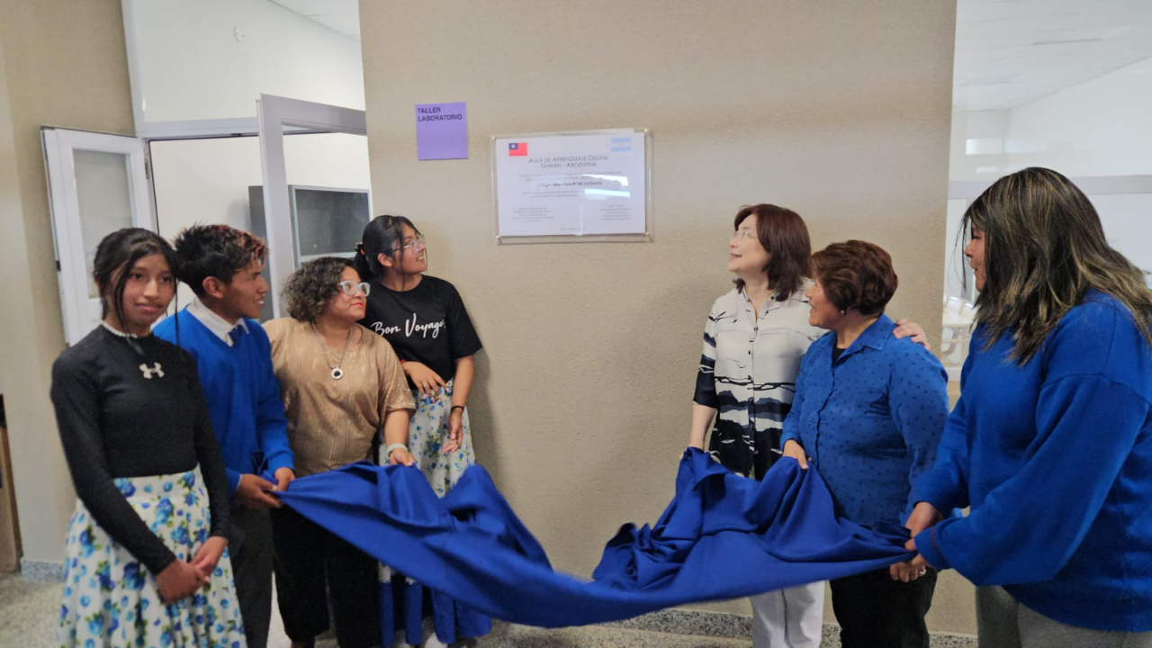 為協助阿根廷教育資源相對缺乏的偏鄉學校強化教育資源及提升數位資訊教育品質,駐阿根廷代表處謝妙宏大使於本(2024)年10月28日前往Jujuy省,並代表台灣政府捐贈當地偏鄉奇亞卡市「第69號中學」(Colegio Secundario N69, La Quiaca)共28台國產品牌筆記型電腦,協助該校設立「台灣數位學習教室」,並正式揭牌啟用。