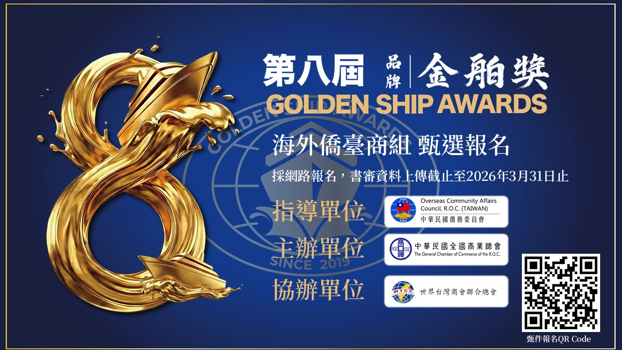 一、 為促進臺灣服務產業輸出國際,中華民國全國商業總會自108年起每年舉辦品牌金舶獎選拔優質品牌企業,嗣於111年新增「海外僑臺商組」選拔,由僑務委員會擔任指導單位,推薦具優秀表現及發展潛力之海外僑臺商企業參加選拔,以凝聚海內外僑臺商能量,協助海外僑臺商服務業品牌發展,並藉由獲獎之海外臺商優質服務,提升臺灣品牌國際能見度,促進我國經濟發展。