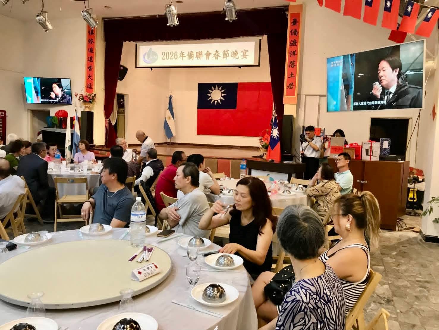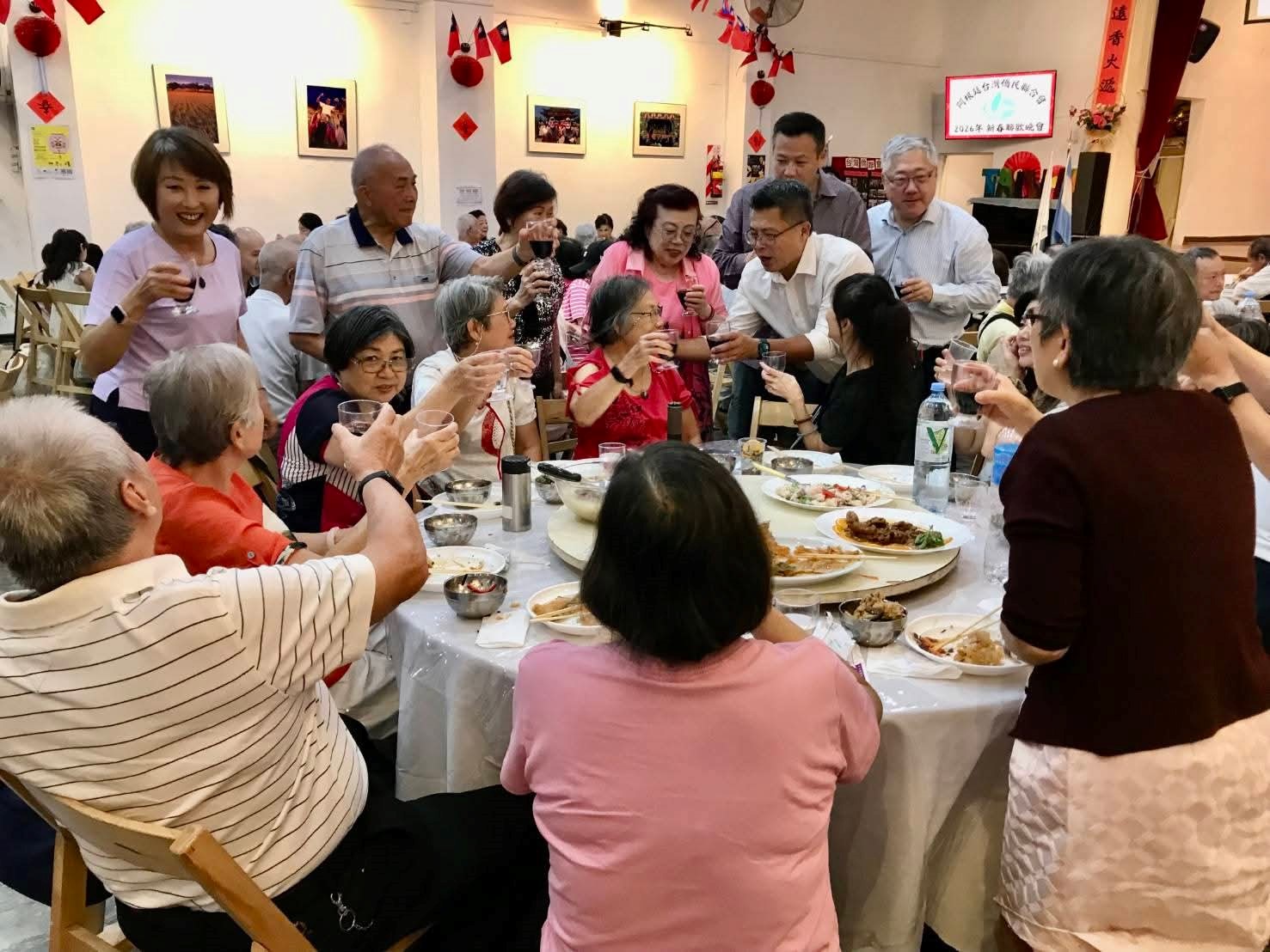 阿根廷台灣僑民聯合會於本(115)年2月22日舉辦「2026年春節晚宴」活動,本處同仁暨眷屬應邀出席,惠副參事卓岳並代謝大使妙宏發贈新春紅包給年長長輩,祝福大家新年快樂!