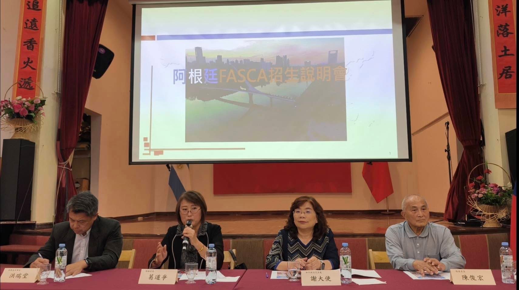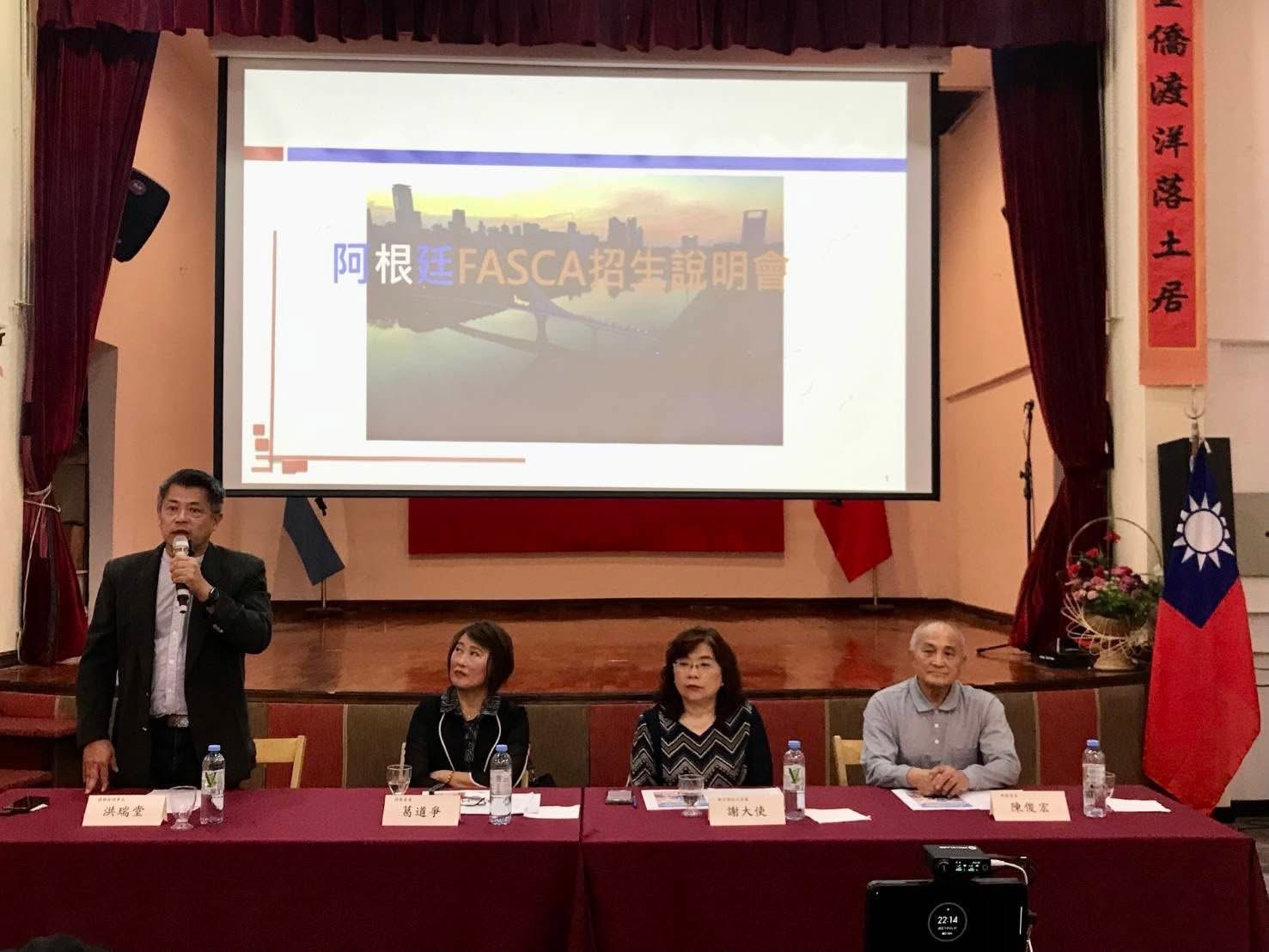 駐阿根廷代表處大使謝妙宏勉勵僑青,在今日快速變動的世界中,應該積極拓展「國際視野」、培養「跨文化能力」以及「領導力」,而 FASCA 正是這些競爭能力最好的培養場域。阿根廷FASCA主任委員葛道爭及副主任委員陳俊宏也鼓勵符合資格的僑青朋友們踴躍報名參加,透過專業講師的培訓課程,深化對台灣的認同,培養國際觀及在各方面的自我提升。