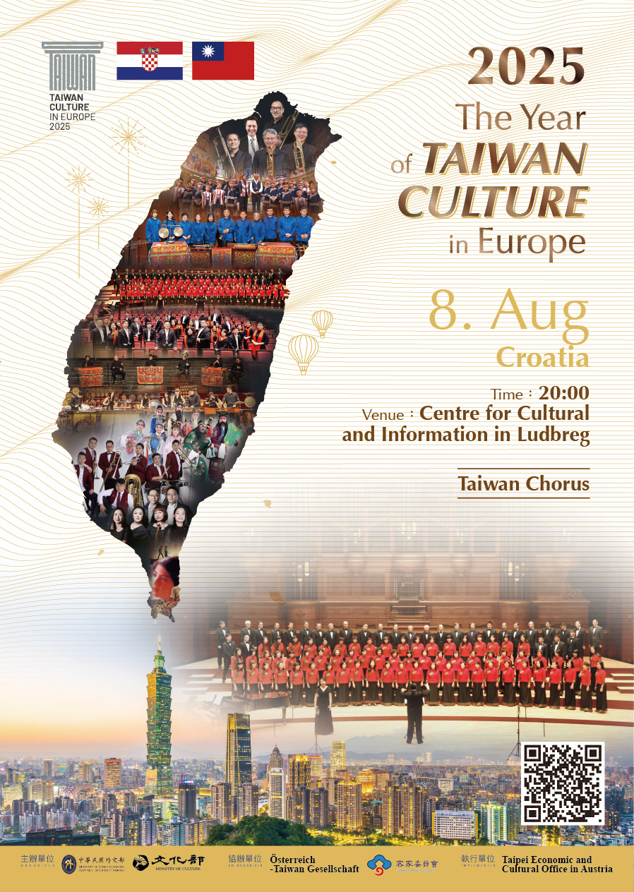 臺灣是個融合多元文化的美麗寶島,四大族群——閩南、客家、原住民及外省族群,在這片土地上和諧共融,交織出豐富的音樂文化。我們特別精選代表各族群風格的經典曲目,共計16首,希望透過音樂,與來自克羅埃西亞的國際友人們分享臺灣之美,展現我們心中對文化的熱愛與尊重。