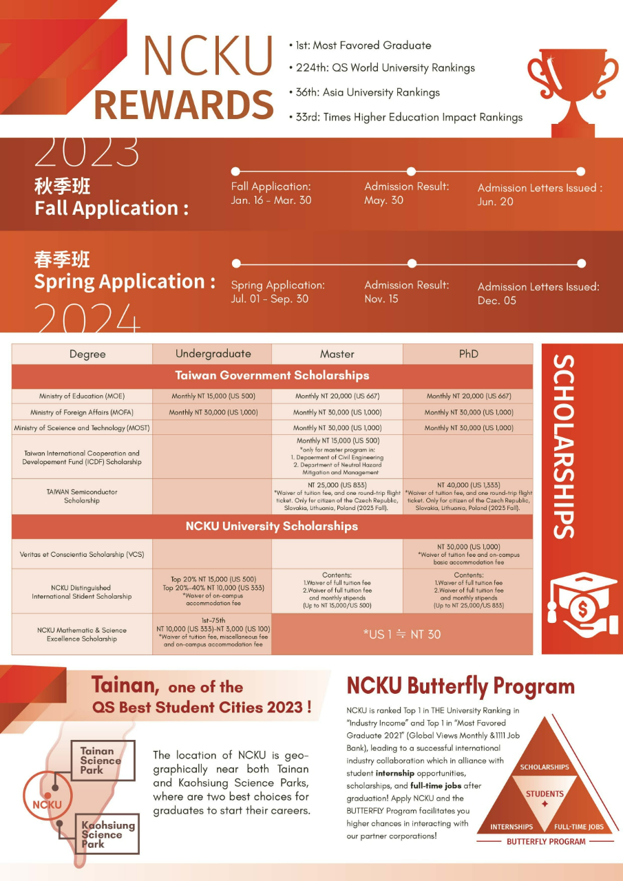 For up-to-date information, please always refer to the NCKU website and contact information.