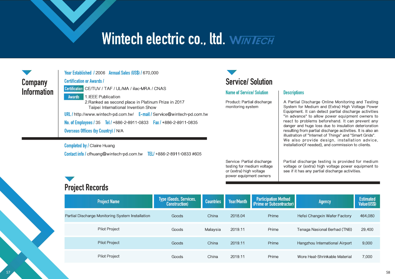 - 經濟部國際貿易局為「爭取全球政府採購商機專案」,彙蒐20家我國顧問公司簡介供參,則促成我業者與國外相關單位合作, 共同爭取全球政府採購商機。