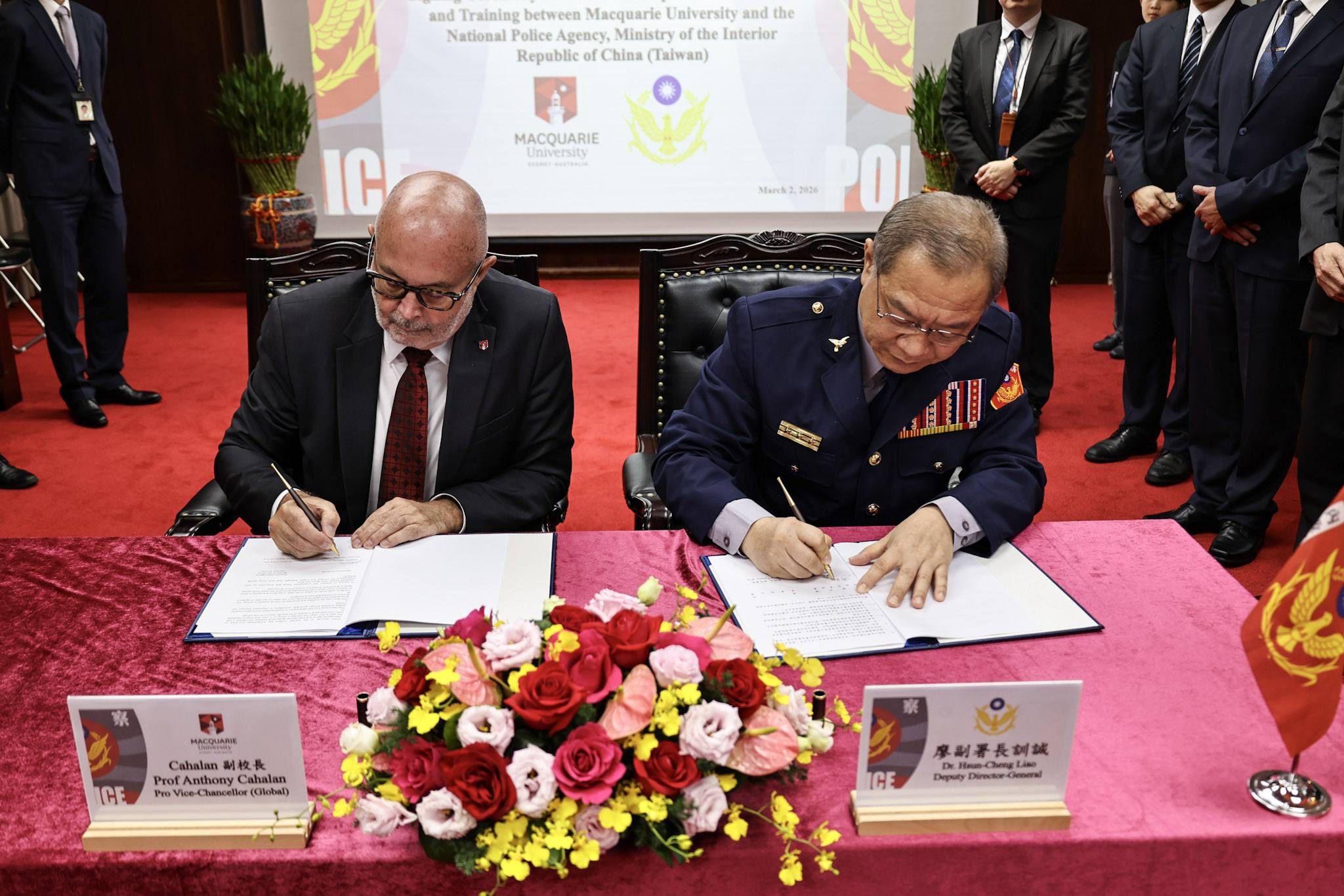 The MOU was signed by NPA Deputy Director-General Liao Hsun-Cheng and Pro Vice-Chancellor (Global) of Macquarie University, Anthony Cahalan. Deputy Director-General Liao stated that the partnership will enhance the professional capabilities of Taiwanese police officers in areas such as intelligence, strategy and security, criminology, and international relations, thereby strengthening efforts to combat transnational crime and safeguard regional security. Pro Vice-Chancellor Cahalan expressed his expectation that the collaboration will deepen exchanges in higher education and professional training, and help cultivate police professionals with a global perspective.