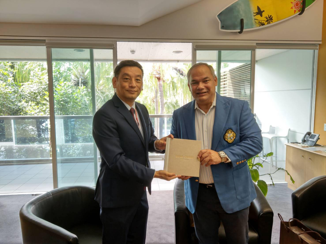 昆士蘭州黃金海岸市市長Tom Tate於4月30日在市政廳辦公室接見陶令文處長