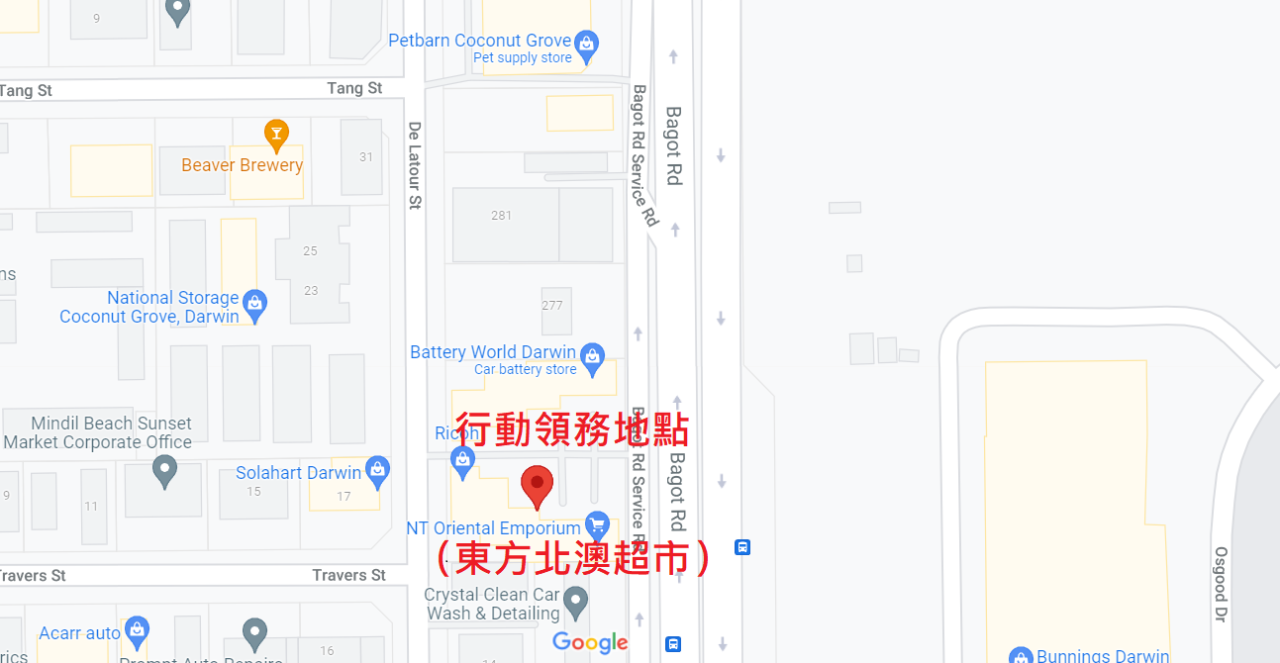 三、 地點:東方北澳超市 (Shop 1/269 Bagot Road, Coconut Grove, Nightcliff, NT)