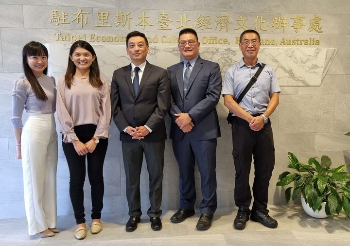 陶令文處長接待前來布里斯本公幹轉機的海洋委員會黃宣凱副處長與同仁們。黃副處長在海巡部門服務多年,曾擔任海巡艦艦長,乘風破浪捍衛台灣海疆的安全。