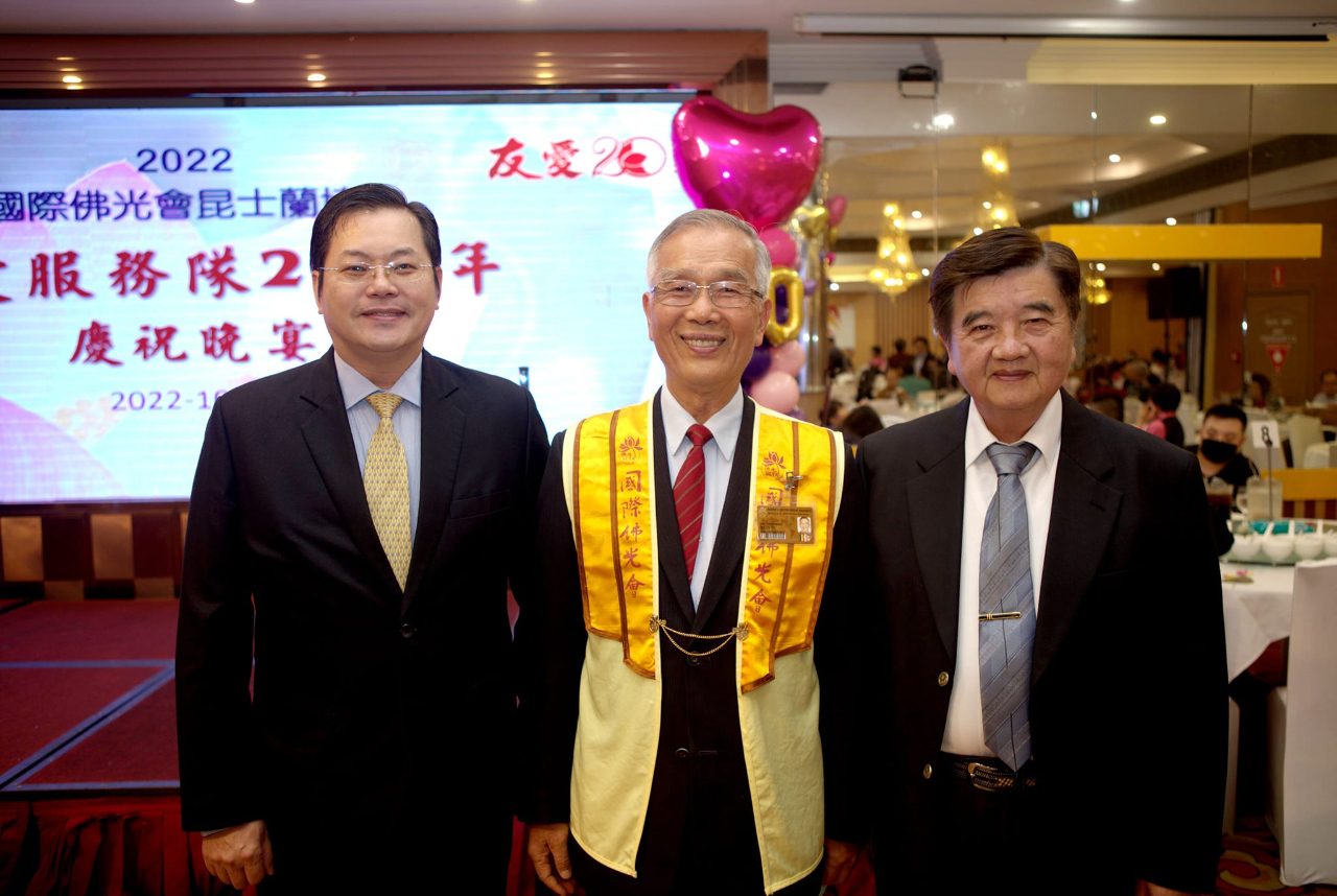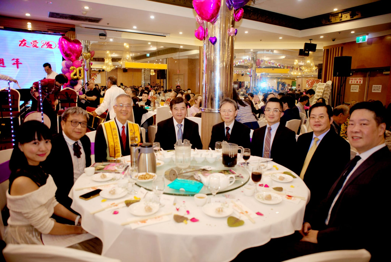 佛光山中天寺友愛服務隊 10月22日舉行慶祝廿週年聯歡晚會,陶令文處長夫婦偕同仁出席,布里斯本市長Adrian Schrinner、洛根市長Darren Power、聯邦參議員Paul Scarr及相關州議員與市議員也應邀參加,現場席開40桌,熱鬧滾滾,佛光山 #南天寺 澳紐總住持滿可法師也專程從雪梨前來主持。