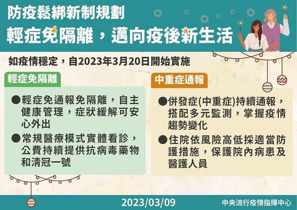 台灣3/20開始防疫新制,輕症免通報免隔離