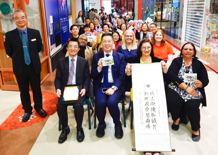 最後,主辦單位亦準備陳秋燕親手繪製蝴蝶的卷軸送給市議員Kim Marx,感謝她長期支持臺灣僑界在澳洲當地發展,同時送出印有陳秋燕委員油畫作品的明信片,作為紀念品;活動也在大家共同合照留念後順利落幕。