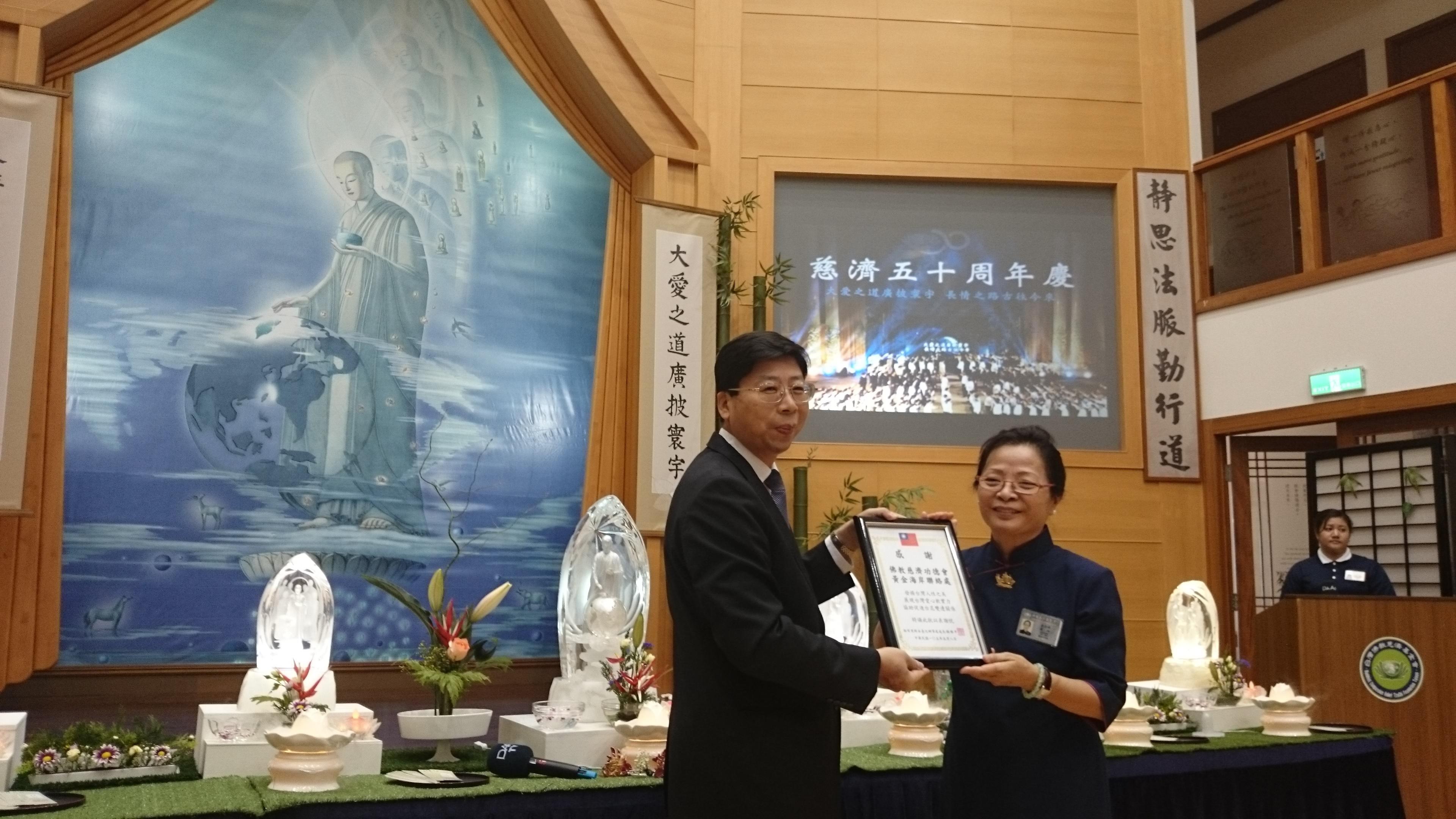 駐布里斯本辦事處賴維中處長頒發黃金海岸慈濟感謝狀,由負責人吳照峰師姐代表接受。