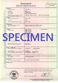 - 昆士蘭州註冊處申請Standard Death Certificate須知,昆士蘭標準版死亡證明Standard Death Certificate 範本如下: