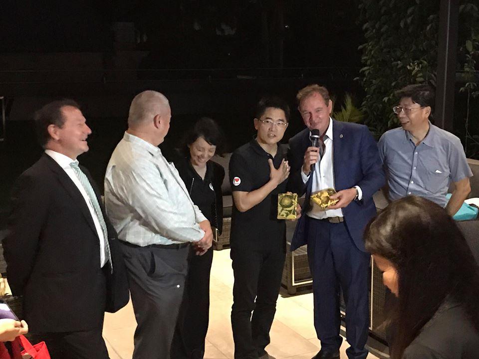 賴維中處長(右一)、台東縣黃健庭縣長(右三)、縣長夫人陳怜燕女士(右四)、聯邦眾議員Graham Perrett(左一)、昆士蘭州議員Peter Russo(左二)、Ipswich市長Paul Pisasale(右二)