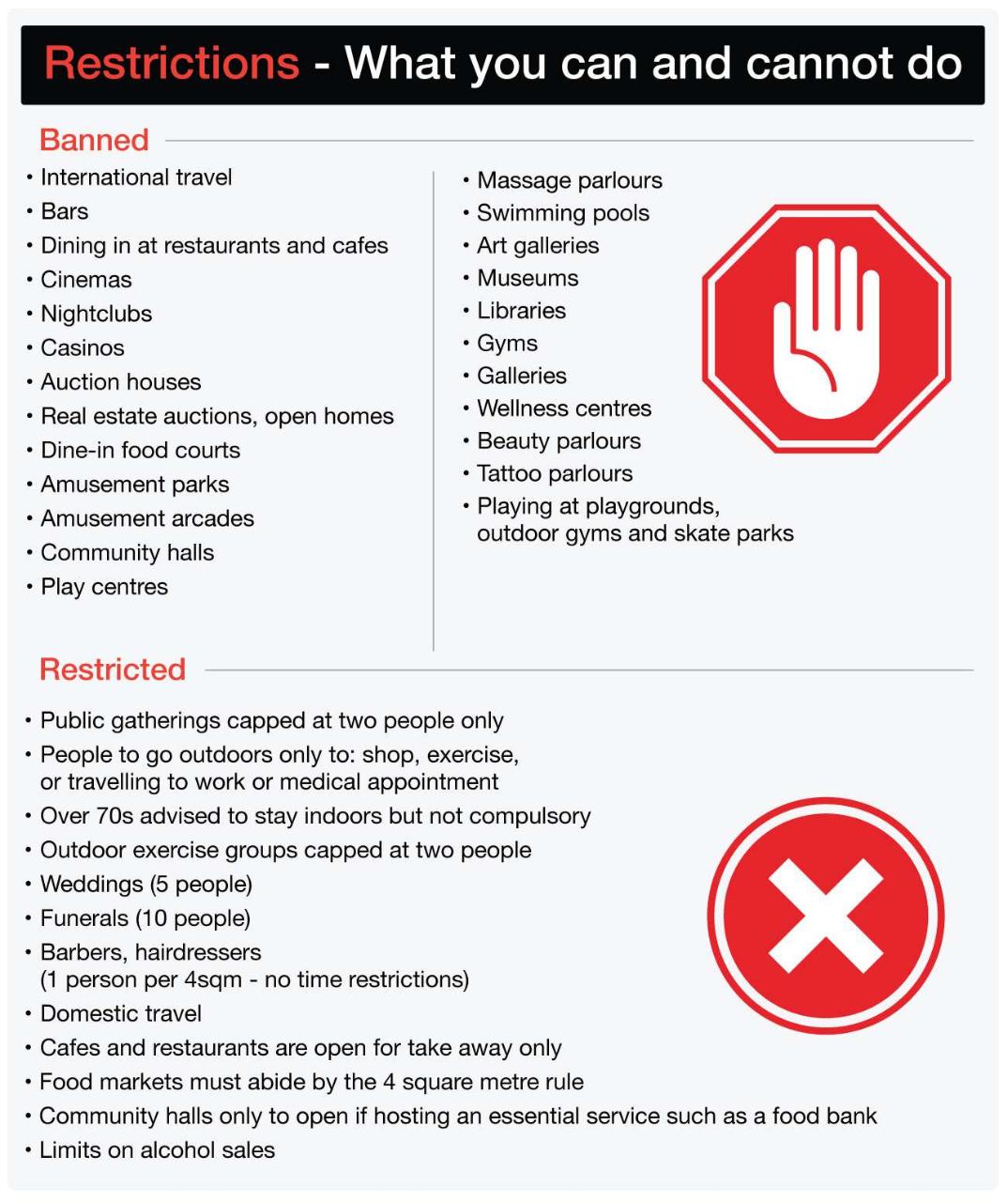 • 民眾外出僅限: 購物、運動、工作或就醫