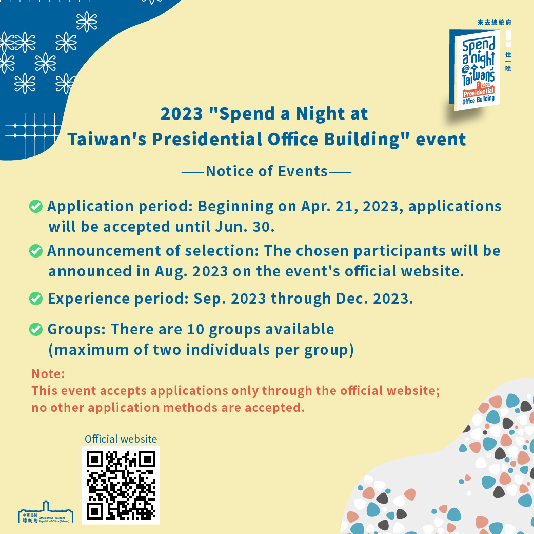 "Spend a Night at Taiwan's Presidential Office Building" event