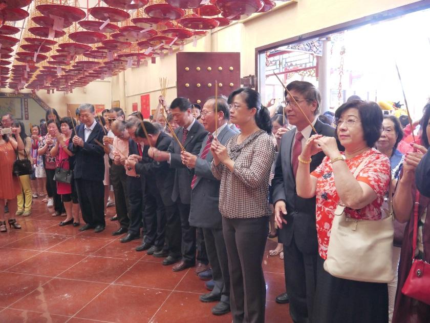 新春團拜活動於上午11時30分舉行,由該會會長馬世源偕所有理監事帶領大家齊向關聖帝君上香祈福,祈求中華民國臺灣及澳洲兩國風調雨順、國泰民安。祈福活動結束後,並於廟前廣場進行祥獅獻瑞及燃放鞭炮等儀式,大家互道新年快樂,氣氛熱鬧和樂。