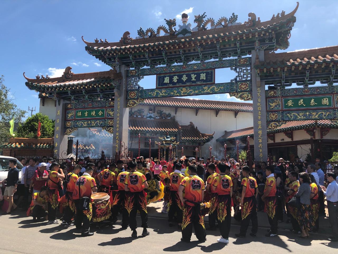 新春團拜活動於中午11時30分舉行,首先由該會馬會長及所有理監事帶領大家向關聖帝君上香祈福,祈求中華民國及澳洲風調雨順、國泰民安。祈福活動結束後,嗣於廟前廣場進行祥獅獻瑞及燃放鞭炮等儀式,主辦單位準備餐點供與會人士享用,大家互道新年恭喜,充滿新年節慶熱鬧氣氛。