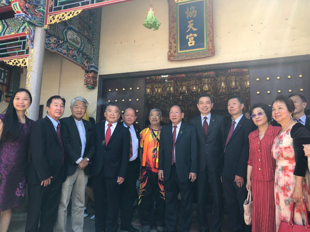 澳洲維省潮州會館於本(109)年1月25日大年初一中午在該會會館協天宮關聖帝君廟舉行新春團拜,本處林處長起文偕王副組長偉年及康僑務秘書雅雄應邀出席。該會會長馬世源、副會長蔡旭亮、萬年興(Manningham)市前市長楊千慧、僑務諮詢委員吳天佐夫婦、王桂鶯、劉國強、世界華文作家交流協會秘書長黃玉液夫婦、墨爾本日報副社長黃惠元及庸社詩書畫會榮譽會長蘇華響夫婦等僑領共襄盛舉。