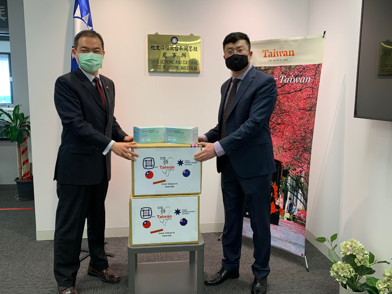 維多利亞州COVID-19疫情本年8月二度爆發,「台北市進出口商業同業公會」(Importers and Exporters Association of Taipei,簡稱IEAT)關心維州疫情並共同抗疫,捐贈2千片台灣國家隊製造的醫療級口罩予「維多利亞商工會」(Victoria Chamber of Commerce and Industry,簡稱VCCI)。