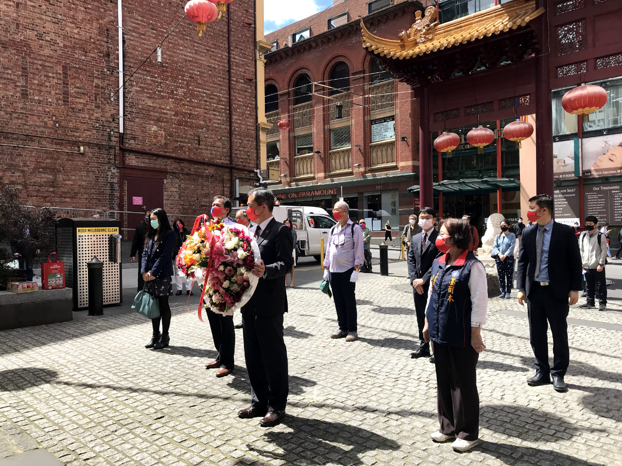 11月14日上午,澳洲墨爾本僑界約30人齊聚墨爾本華埠靈星門廣場,參與中華民國國父孫中山先生154年誕辰獻花活動,感念國父遺留的精神。