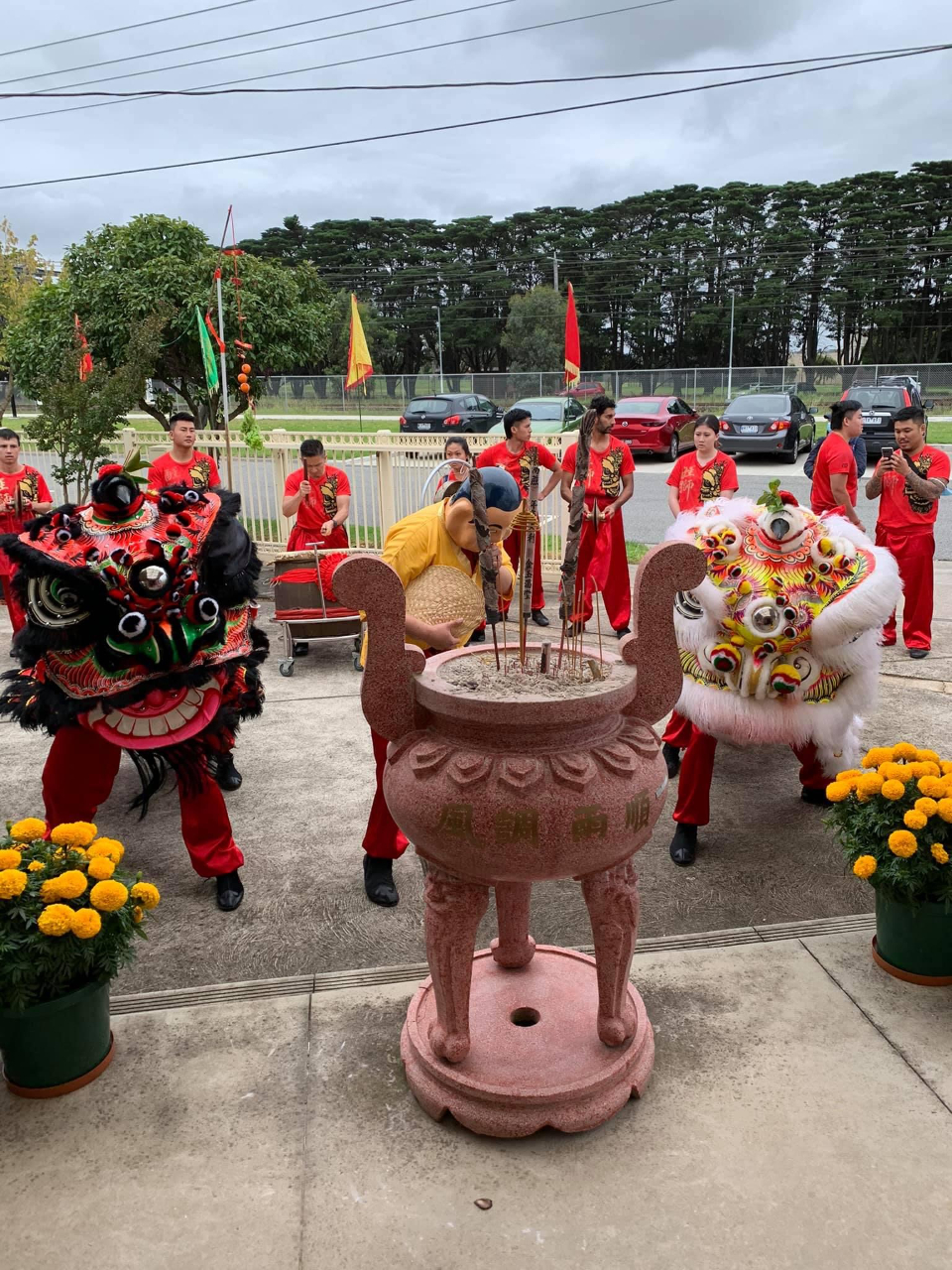 年初一一早觀音廟依例迎來醒獅團展開傳統年節序曲,信眾及僑胞紛紛前來禮佛,祈求來年健康平安。林處長特別在這個重要的日子前往觀音廟與僑胞們互祝新年快樂,他也感謝欽廉同鄉會堅定支持中華民國並協助接待國內訪團,祝福大家牛年扭轉乾坤,中華民國及澳洲兩國國泰民安、風調雨順。