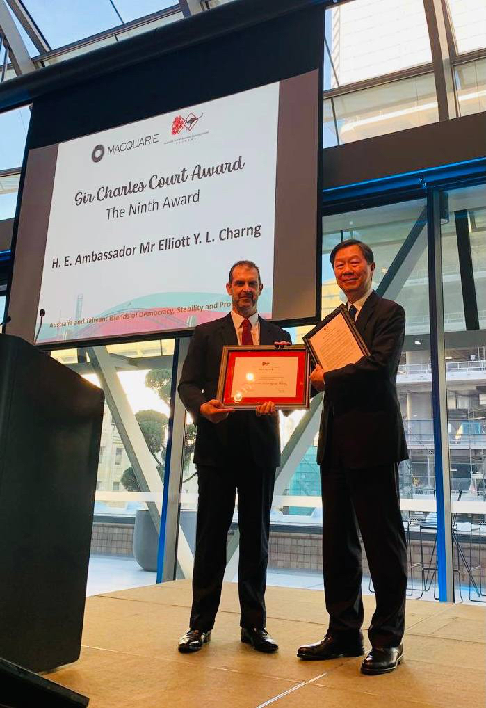 ATBC主席John Toigo 也特別頒贈常大使第9座Sir Charles Court Award,表彰常大使對深化台澳關係、增進兩國友誼的卓越貢獻。