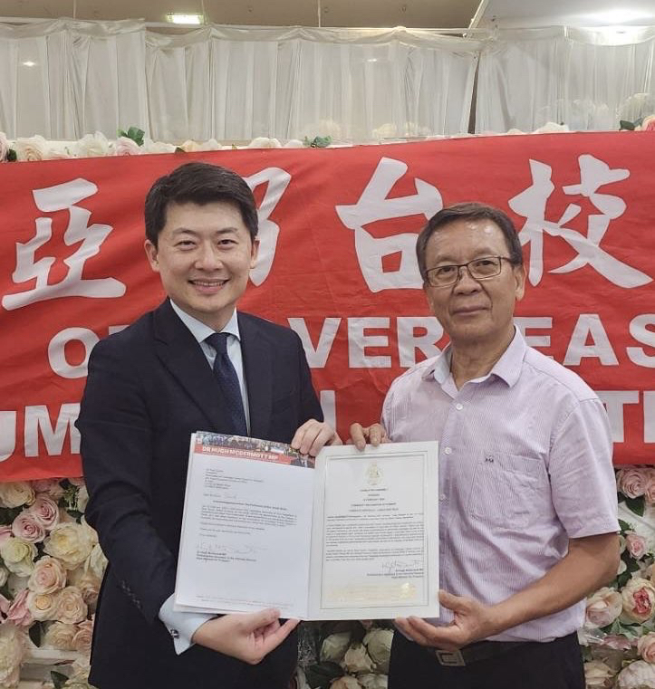 吳處長也特別轉致新南威爾斯州律政廳副廳長Hugh McDermott 下議員在州議會提出並列入議事錄的正式聲明,肯定黃會長及校友會對在澳台灣社群長期且卓越的貢獻。此為新州內閣議員首度提出肯定台僑社團的正式聲明,與有榮焉。