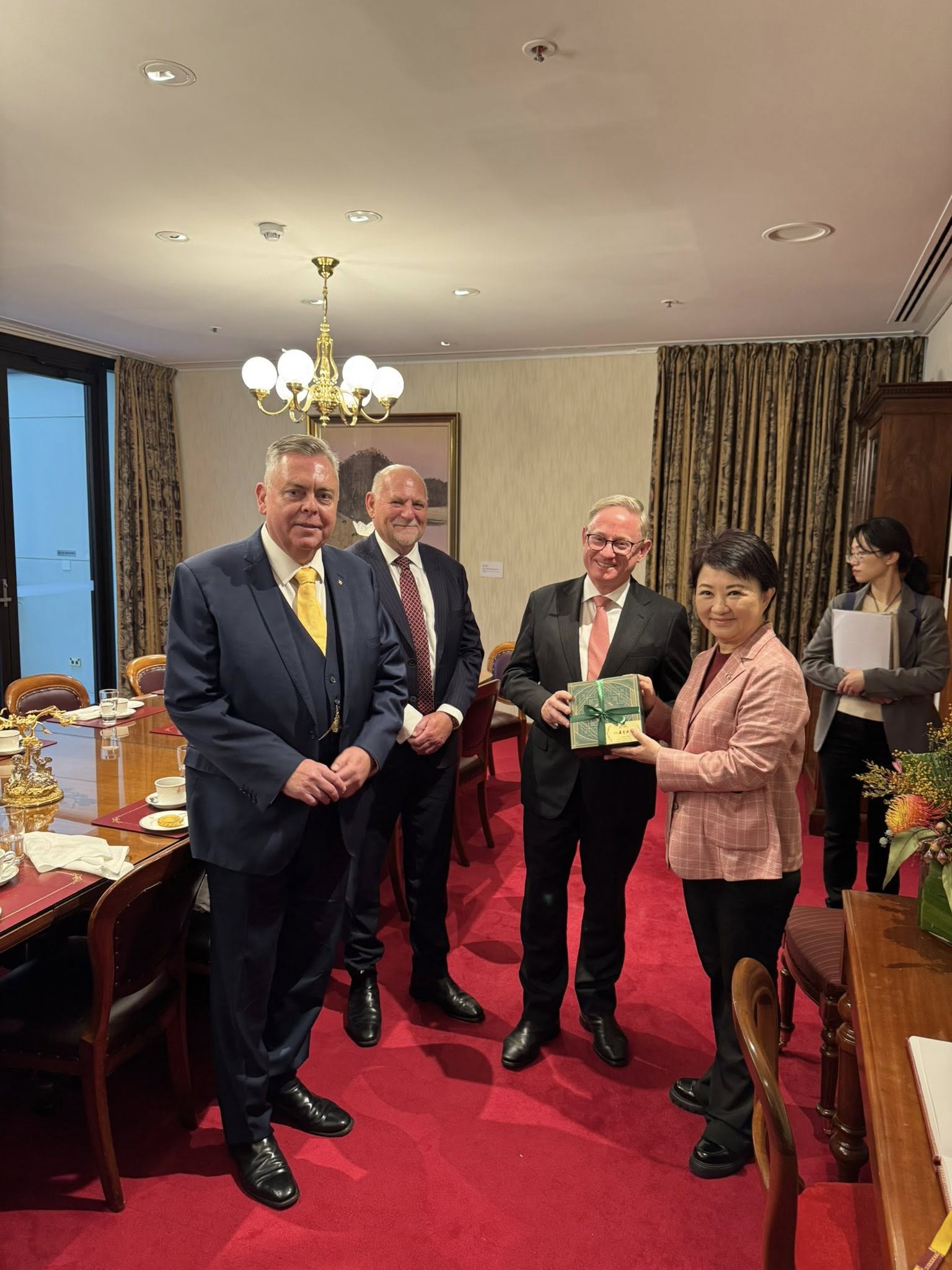 台中市長盧秀燕率團來到雪梨考察市政、文化設施及推動城市交流,拜會新南威爾州上議院正副議長及友台小組主席,讓台灣的實力被看見,也讓台灣的需要及國際議題訴求獲得重視。盧市長也和台灣旅澳鄉親齊聚一堂,分享台中近年的建設與發展,充滿希望。