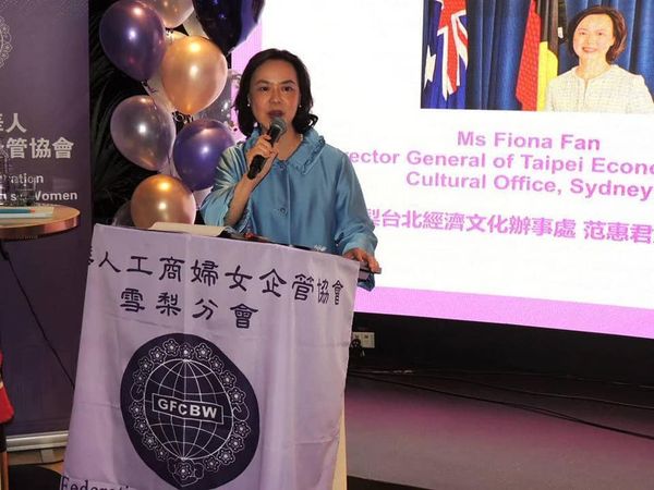 范處長致詞表示,澳洲是我國推動新南向政策對外整體經貿戰略的重要目標國,肯定陳阡蕙總會長全力支持世華在澳洲開枝散葉,並期許雪梨分會在白創會會長領航下蓬勃發展。台、澳共享自由民主普世價值,台灣在全球高科技供應鏈扮演關鍵角色,是可信賴、遵守貿易規則的夥伴;我國積極推動加入「跨太平洋夥伴全面進步協定」(CPTPP),也希望世華姊妹們共同牽成,為台澳互惠共榮寫下新頁。范處長也表示台灣在推動性別平等及婦女賦權上成績亮眼,立法委員女性比例高達42%。期許世華鏈結海內外姐妹力量,讓台灣在世界舞台發光發熱。