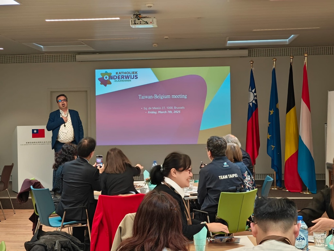 比利時天主教教育機構教學顧問 Tim Van Aken 則介紹該大區天主教教育,強調其在支持佛拉蒙大區和布魯塞爾學校方面的角色。該機構國際化與夥伴關係團隊負責管理Erasmus+ 和 E-twinning 計畫,涵蓋本地及國際層面。自2021年起,該機構逐步擴展至學校教育(SCH)、成人教育(AE)及職業教育與培訓(VET),並在未來計劃安排該區教職員赴臺北進行的教育交流。簡報最後強調該機構持續致力於促進國際合作與夥伴關係。