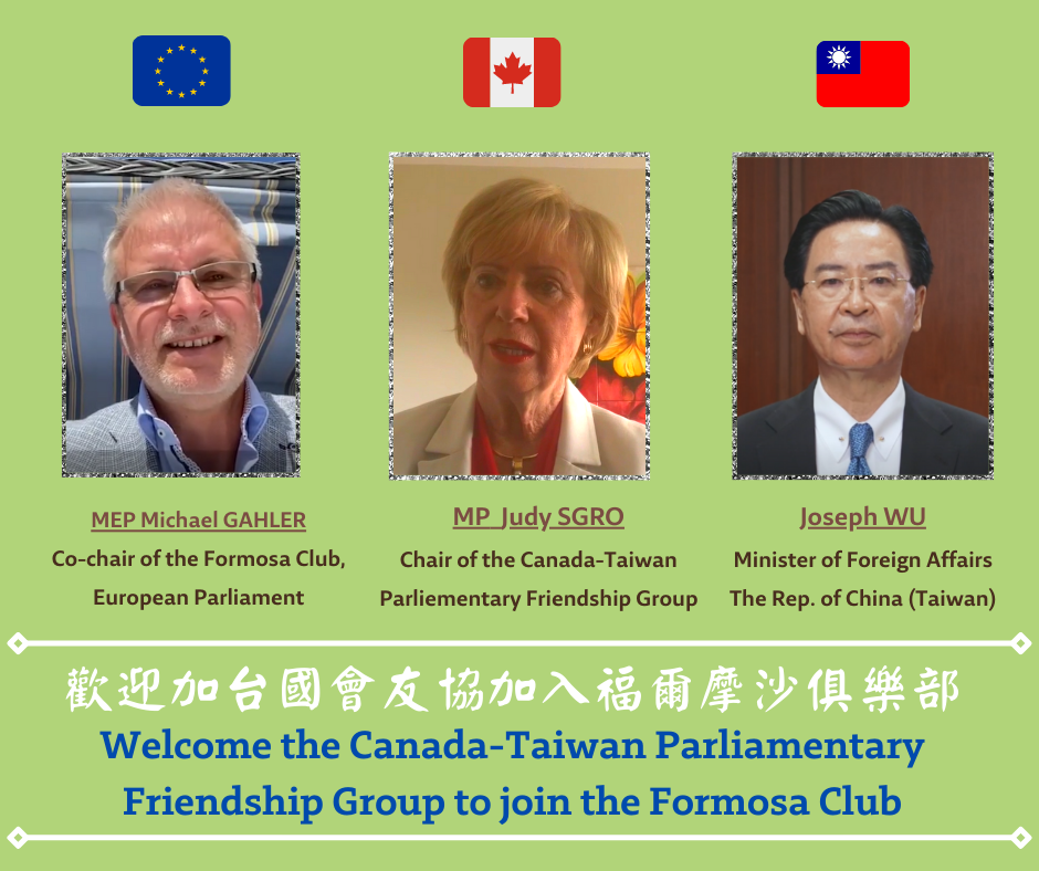 We welcome the joining of the Canada-Taiwan Parliamentary Friendship Group in the Formosa Club.